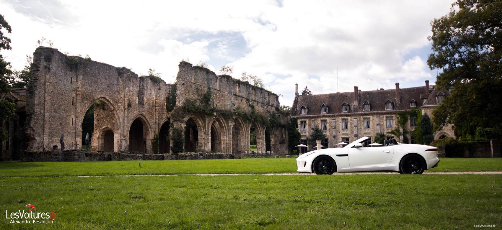 Pour notre essai de la Jaguar F-TYPE, il nous fallait un lieu en accord avec la légende Jaguar et son histoire débutée en 1922. Fondée sous le nom Swallow Sidecar Company (SSC) par Sir William Lyons et William Walmsley, la marque prit son nom définitif en 1945, les deux S successifs rappelant la plus sombre période de l’humanité devaient disparaître. Notre première étape allait donc être l’Abbaye des Vaux de Cernay et ses petites routes environnantes qui nous plonge immédiatement dans une atmosphère proche de celle du Kent, région connue comme « le jardin de l’Angleterre ». Notre modèle d’essai, la F-TYPE V6 S se fond parfaitement dans son écrin du jour, bâtisse classée au titre des monuments historiques, aux pierres rongées par le temps.