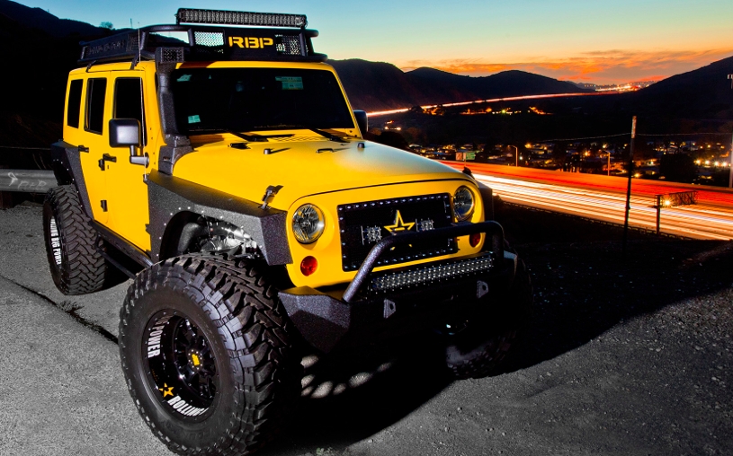 Pour les détails d’ordre techniques, RBP a décidé de monter des pneus Toyo Open Country M/T Tires en 40×15, 50R20, obligeant ainsi le préparateur à rehausser le véhicule de près de 10 cm (personnes de petite taille, s’abstenir). La Wrangler s’est vue aussi offrir deux immenses projecteurs LED de 90 centimètres de large !