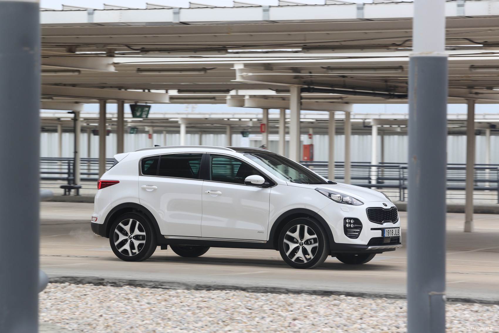 D’un point de vue visuel, le nouveau Sportage s’affirme comme un SUV plus audacieux et sportif. La face avant imposante et très ajourée avec sa fameuse calandre « Nez de tigre » amplifie le regard agressif obtenu par le dessin des phares. En revanche au-delà de ce museau volumineux, les lignes ont tendance à se tendre vers l’arrière du véhicule, ce qui affine l’ensemble. Cela dit, les designers n’ont pas oublié de préciser l’assise du SUV en travaillant sur des lignes horizontales au niveau du hayon. De cette façon, la sensation de largeur est accentuée. De manière à homogénéiser le tout, les diamètres de jantes s’étendent jusqu’à 19″ pour la version Premium. Une formule tout à fait en phase avec le reste du marché.