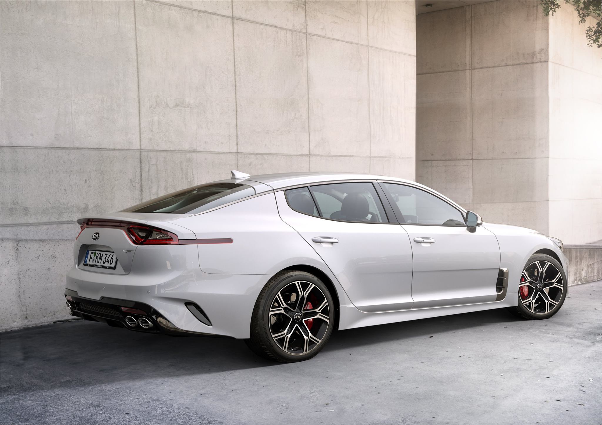 D’une longueur de 4,83 m, la Kia Stinger GT est directement inspirée du Kia GT, le concept-car de 2011. Les stylistes de chez Kia « livrent » une superbe berline au dynamisme saisissant tout en respectant les codes visuels de la marque pour l’avant.