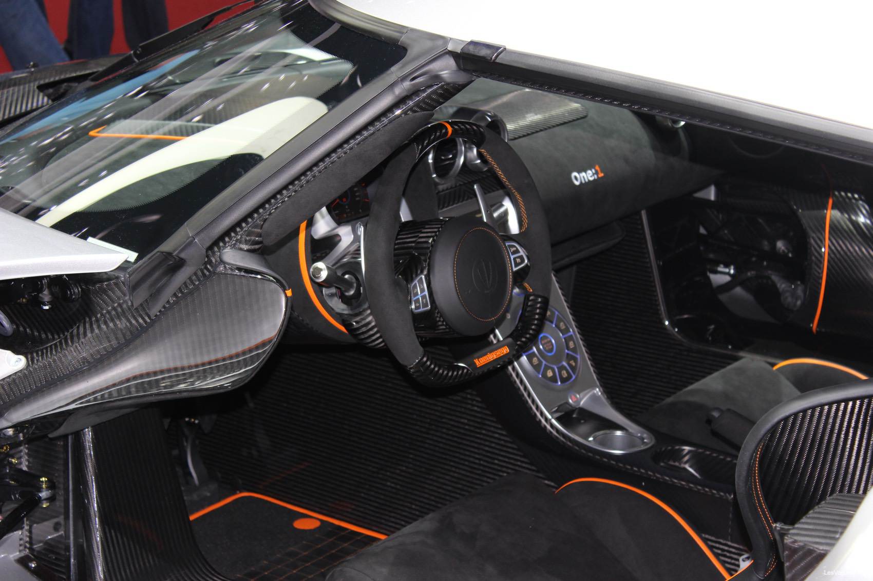 Ce matériau « High-tech » a également été utilisé pour la fabrication des jantes et des ressorts de suspensions. Au total, la One:1 affiche 75 kilos de moins que la Koenigsegg Agera et ne pèse que 1 360 kilos alors que l’Agera est à 1 435 kilos. Pour aller dans le détail des chiffres, les 1 360 chevaux de la « Mégacar » représentent précisément 1 mégawatt à 7 500 tr/min, logique ! A noter, enfin, que le poids, du même nombre, a été calculé avec un demi-plein, soit 37 litres de carburant.