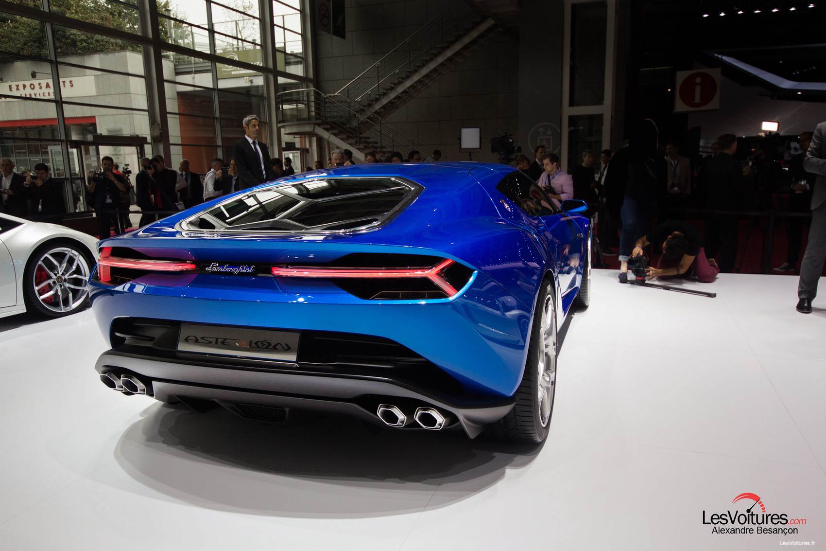 Les prises d’air latérales trop imposantes viennent renforcer cette impression. L’avant s’assagit un peu, en présentant tout de même les deux grosses prises d’air caractéristiques de Lamborghini. Quatre feux LED ont été incorporés au bouclier avant pour donner un air futuriste au concept. Enfin, la garde au sol de l’Asterion est plus haute que sur les autres modèles de la firme de Sant’Agata Bolognese, lui ôtant une once de sportivité.