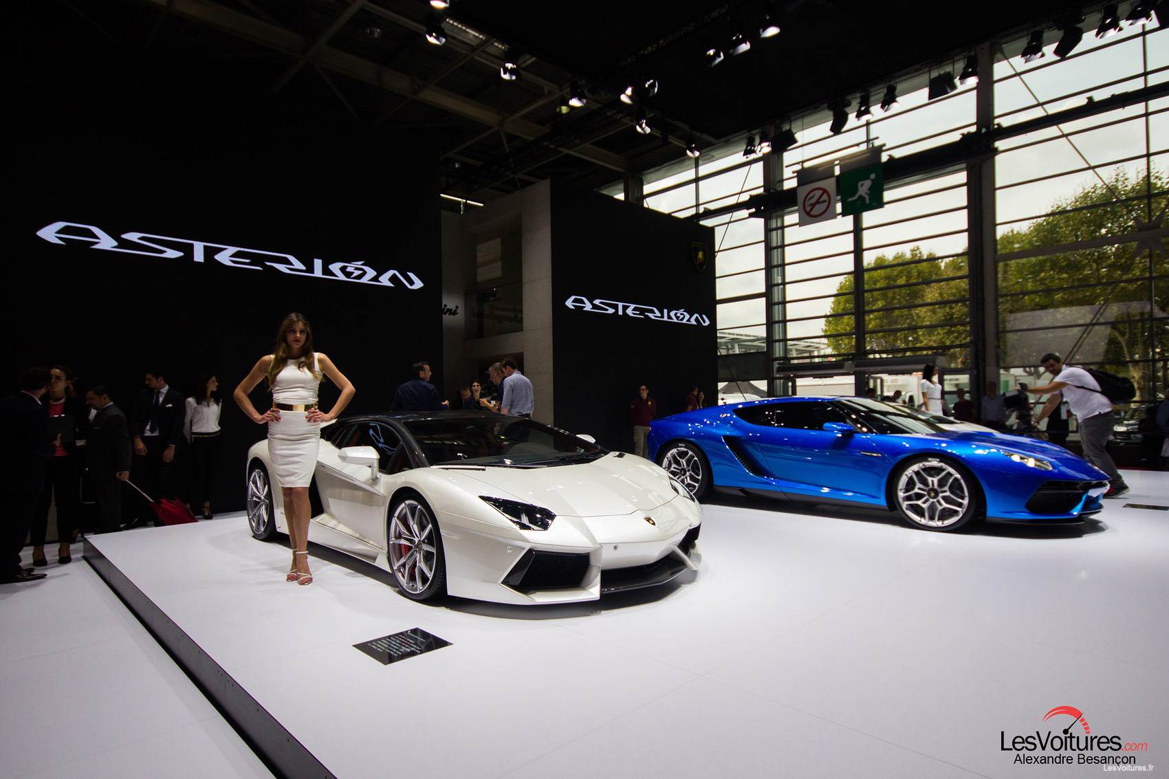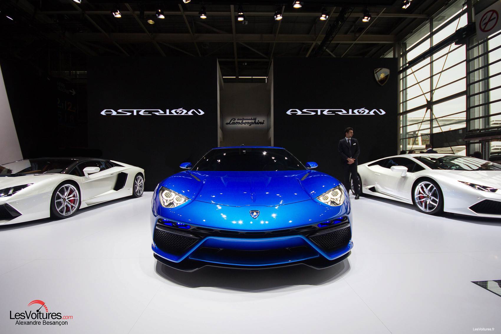 Les prises d’air latérales trop imposantes viennent renforcer cette impression. L’avant s’assagit un peu, en présentant tout de même les deux grosses prises d’air caractéristiques de Lamborghini. Quatre feux LED ont été incorporés au bouclier avant pour donner un air futuriste au concept. Enfin, la garde au sol de l’Asterion est plus haute que sur les autres modèles de la firme de Sant’Agata Bolognese, lui ôtant une once de sportivité.