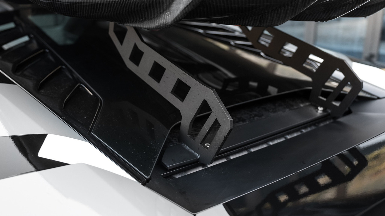 Ainsi, un compresseur de marque VF Engineering offre 190 ch supplémentaires à cette « Lambo » au coffre de toit fabriqué par 56Nord, autre marque de fabrique propre aux voitures d’Olsson. A cela s’ajoutent une ligne d’échappement spécifique Akrapovic, des freins en carbone-céramique Girodiscs, un système des suspensions K&W et des entrés d’air Eventuri en carbone.