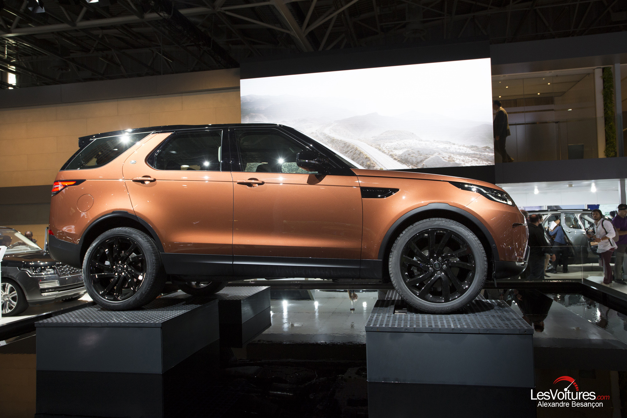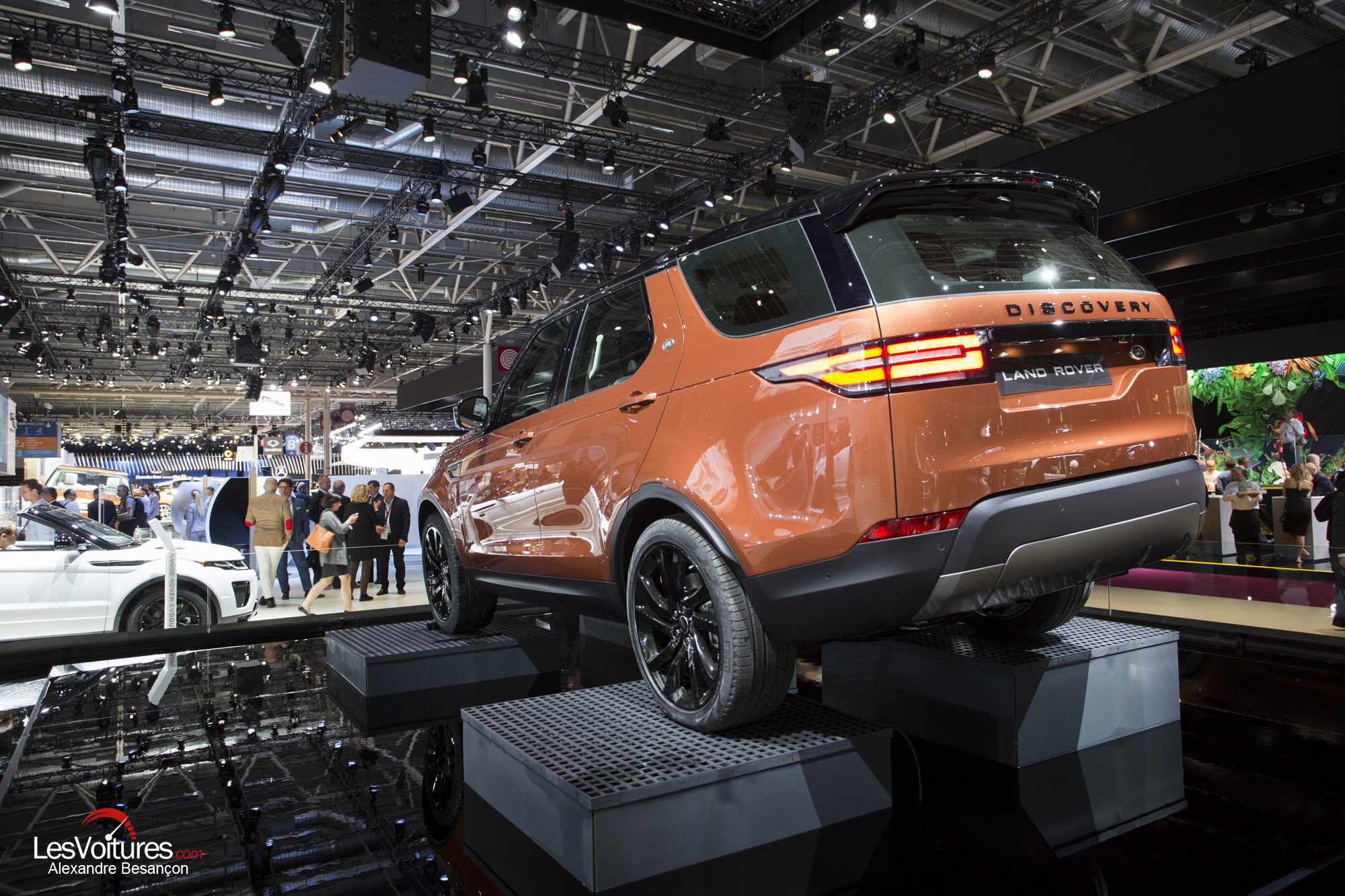 Si la tendance actuelle chez Land Rover est à la retenue du côté des motorisations pour enfin entrer dans les clous d’ici 2020, le Mondial de l’Automobile est l’occasion de dévoiler les autres facettes de l’excès britannique. Le nouveau Discovery et ses sept places occupe ainsi quasiment tout l’espace du stand Land Rover !