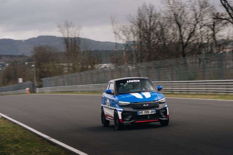 Enfin, il reste à savoir si Citroën, avec son quadricycle électrique, à savoir la voiture sans permis Ami, ou Renault, avec son autre quadricycle électrique, également une voiture sans permis, la Mobilize Duo, tenteront de battre les records réalisés par Ligier sur le tracé mythique du Nürburgring.