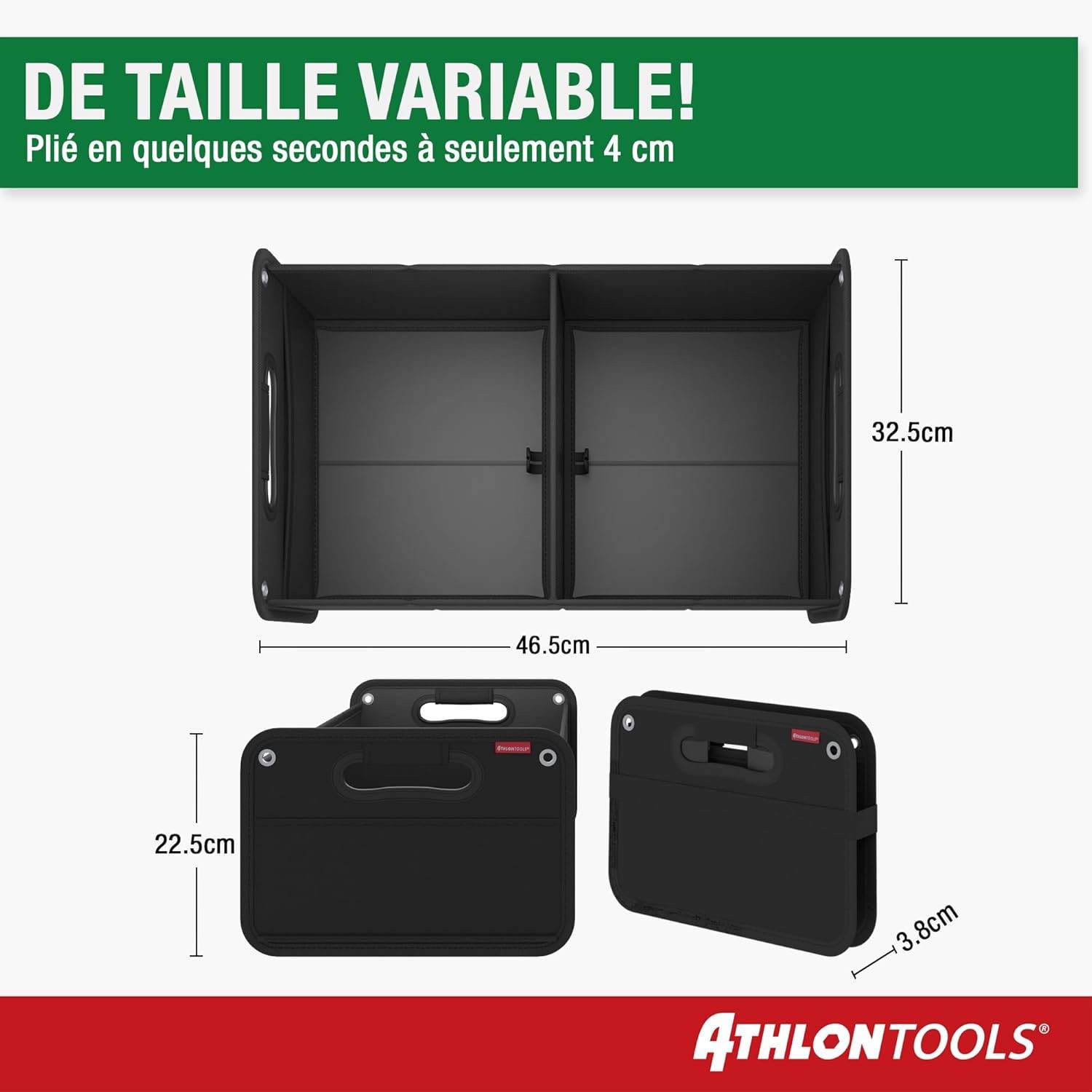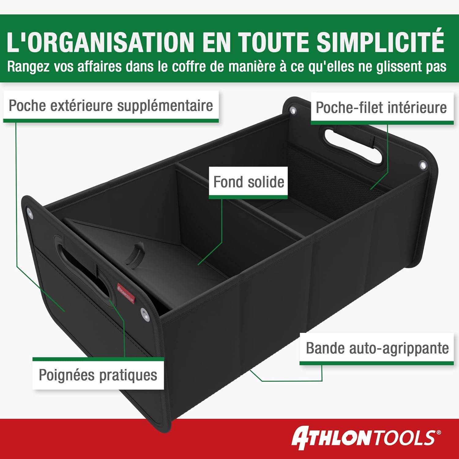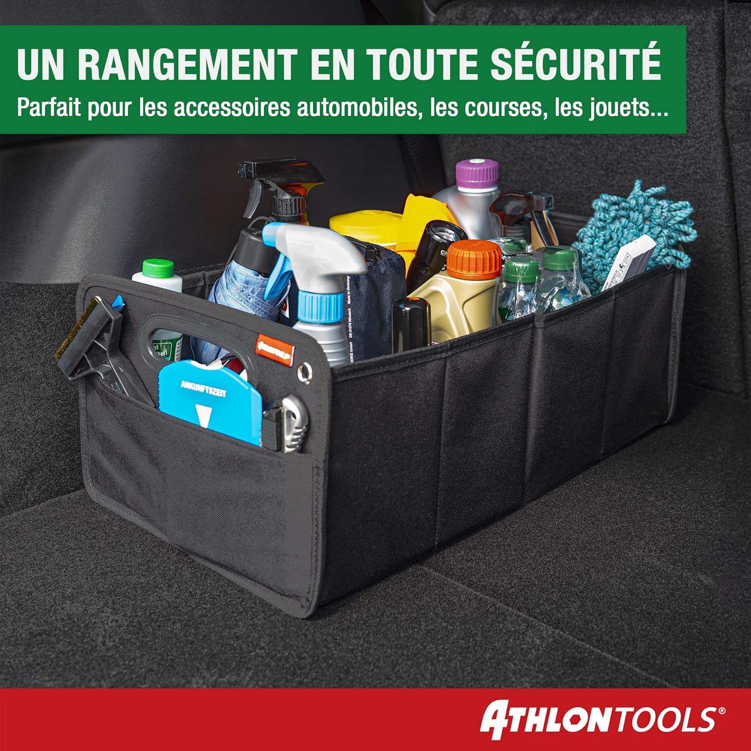 L’organiseur de coffre de voiture ATHLON TOOLS est un sac de rangement compact et pliable qui assure un coffre toujours bien rangé. Il offre suffisamment d’espace de stockage dans ses deux compartiments, parfait pour vos courses, produits d’entretien pour la voiture, et bien plus encore.