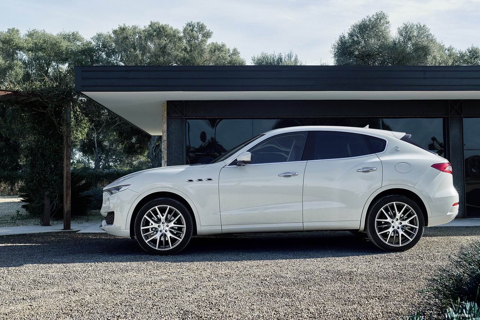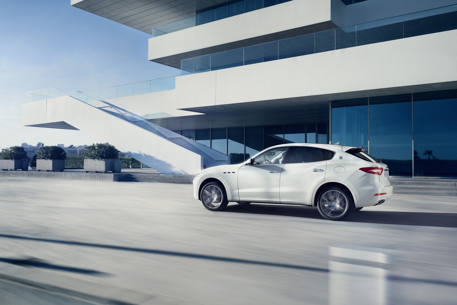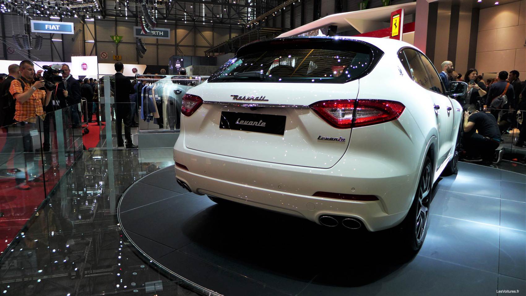 Le coup de crayon ressemble à celui de l’Alfieri. La calandre imposante, béante, est affublée d’optiques de phares acérés, conférant au Levante une gueule de squale. Les passages de roue ainsi que la poupe sont musclés. Les trois ailettes chères à la marque sont présentes sur chaque aile. Les lignes de phares arrière reprennent peu ou prou l’esthétique générale des feux de la Ghibli.