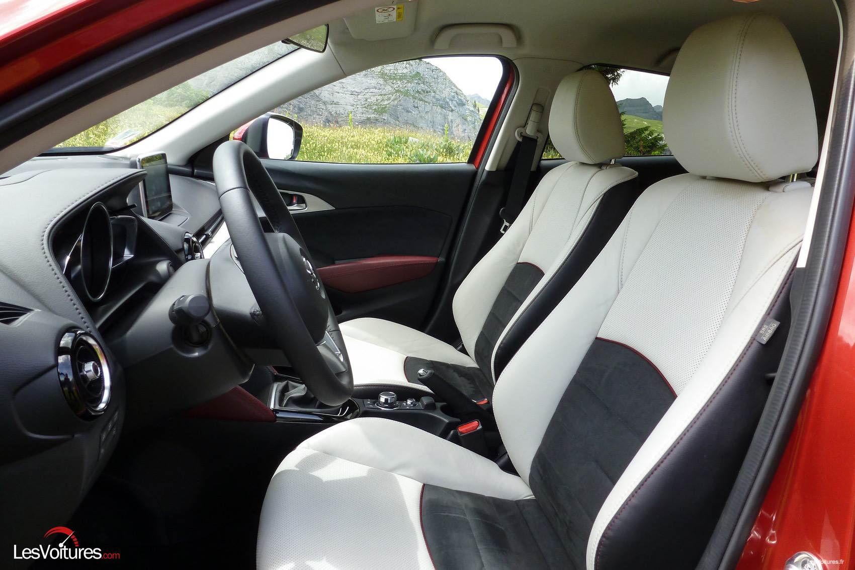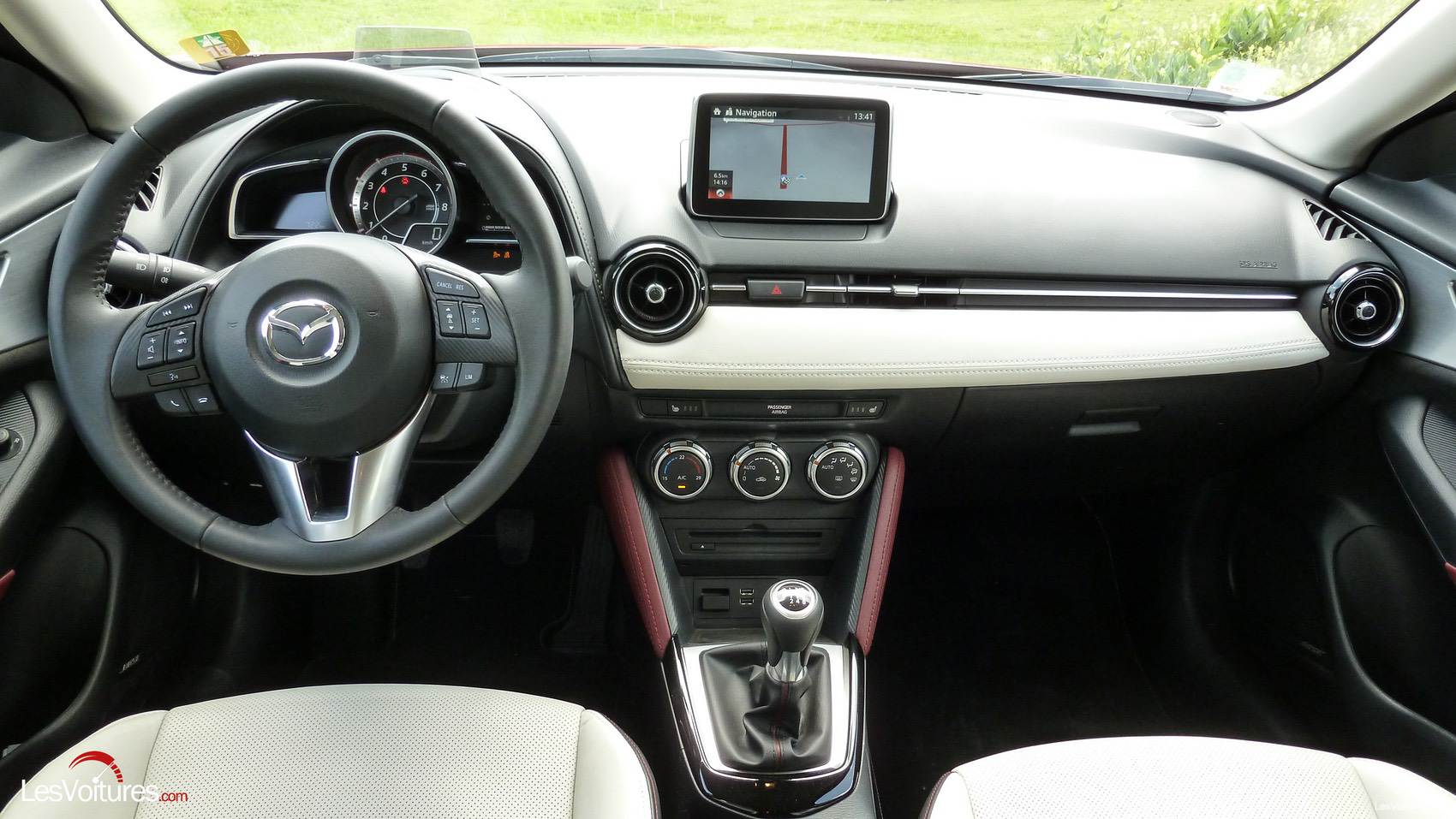 La position de conduite est idéale, le CX-3 est parfait sur ce point. L’autre point fort du CX-3, c’est qu’il est suréquipé. Il nous faudrait un autre article pour détailler l’offre impressionnante d’aides à la conduite et d’équipements que propose Mazda. Sachez que dès le premier niveau de finition Elegance, l’assistance au démarrage en côte (HLA), la climatisation automatique, les régulateur et limiteur de vitesses, le système high-tech MZD Connect d’infodivertissement incluant le GPS sont, entre autres, de série, qui dit mieux ? Sans parler du contrôle dynamique de stabilité (DSC) et de l’antipatinage électronique (TCS). Si vous êtes sensibles aux acronymes technologiques, le CX-3 est fait pour vous !