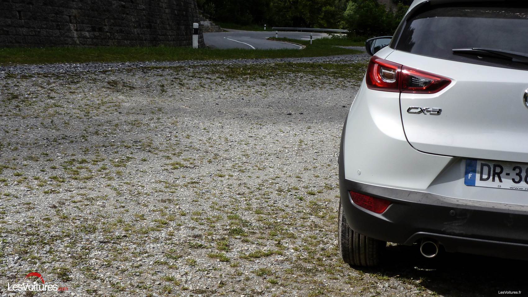 Les capacités tout-chemin du CX-3 ont largement été testées lors de notre essai à très haute altitude même si nous avons évolué à très faible vitesse à certains endroits très accidentés. Du côté des consommations, la CX-3 2.0 l SKYACTIV-G 4×4 affiche 8,1 l/100 km en ville, 5,5 l/100 km en cycle mixte et 4,9 l/100 km sur autoroute. Le point noir de notre modèle d’essai est représenté par ses émissions de CO2 : 150 g/km), soit un malus de 900 €, le plus élevé des CX-3. A noter que seuls les modèles diesels 1.5 l à boîte manuelle sont exemptés de malus. Concernant les performances de notre 2.0 l SKYACTIV-G 4×4, il réalise le 0 à 100 km/h en 8,7 s pour une vitesse maximale de 200 km/h.