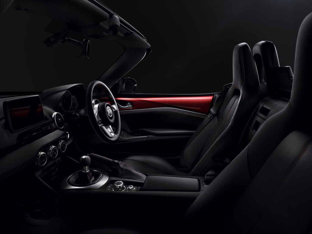 La quatrième version reprend ces ingrédients, et y ajoute encore un peu de piquant. La répartition quasi parfaite du poids à 50/50 sur l’avant et sur l’arrière, son centre de gravité bas, et une cure d’amincissement de 100 kilos à base d’aluminium donnent une MX-5 plus affûtée que jamais. De plus, le design de ce nouveau modèle s’inscrit dans le respect de la nouvelle philosophie Mazda : le design « KODO » ou « l’âme du mouvement ». Il s’agit de codes visuels qui s’inspirent des animaux sauvages et des athlètes, symbolisant énergie et pureté esthétique. Stylistiquement, le KODO se traduit sur la nouvelle MX-5 par un design plus acéré que sur ses devancières. Le bouclier avant se pare ainsi d’une calandre béante, agressive et de deux baguettes de LED obliques, dans l’ère du temps.