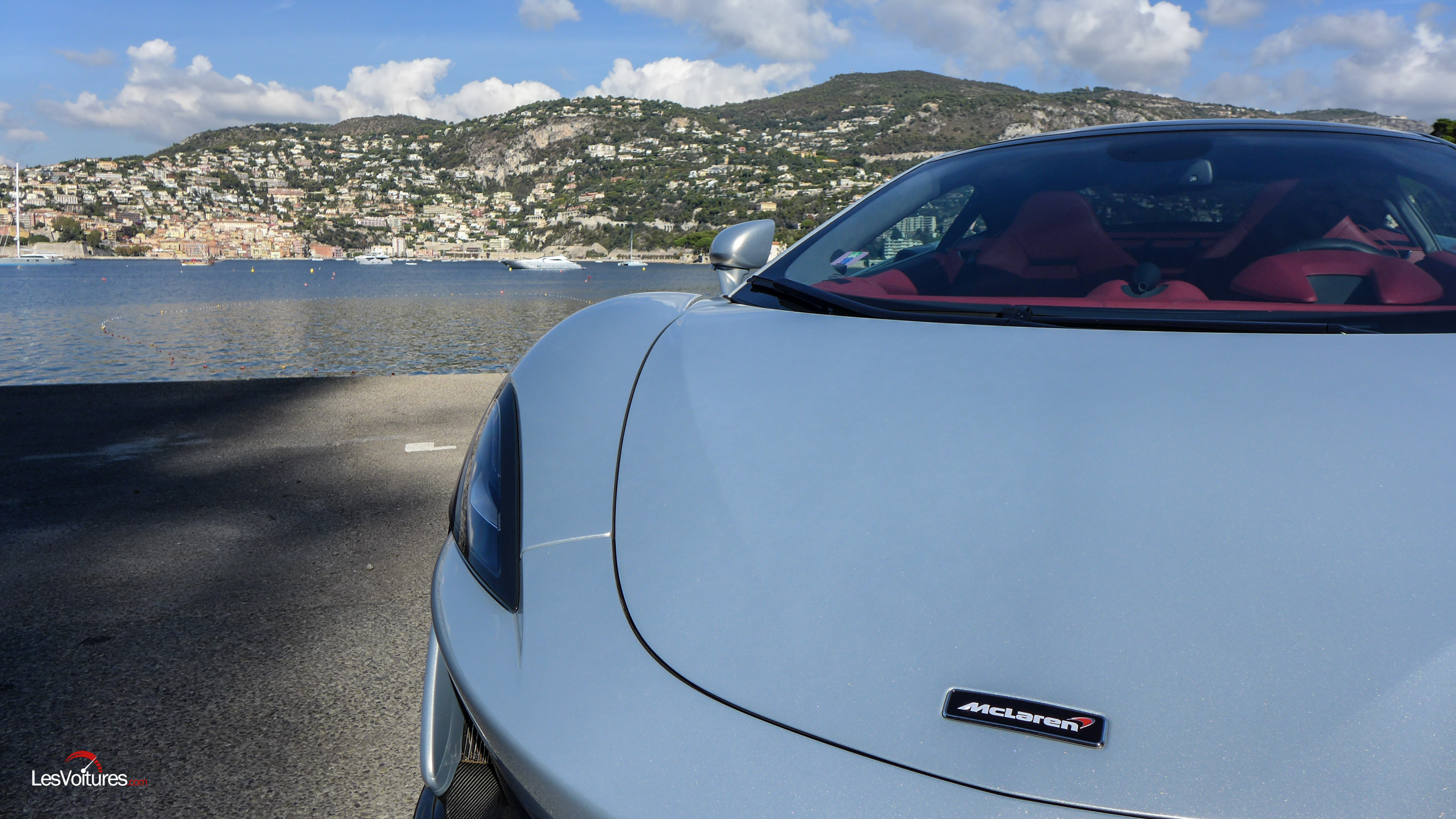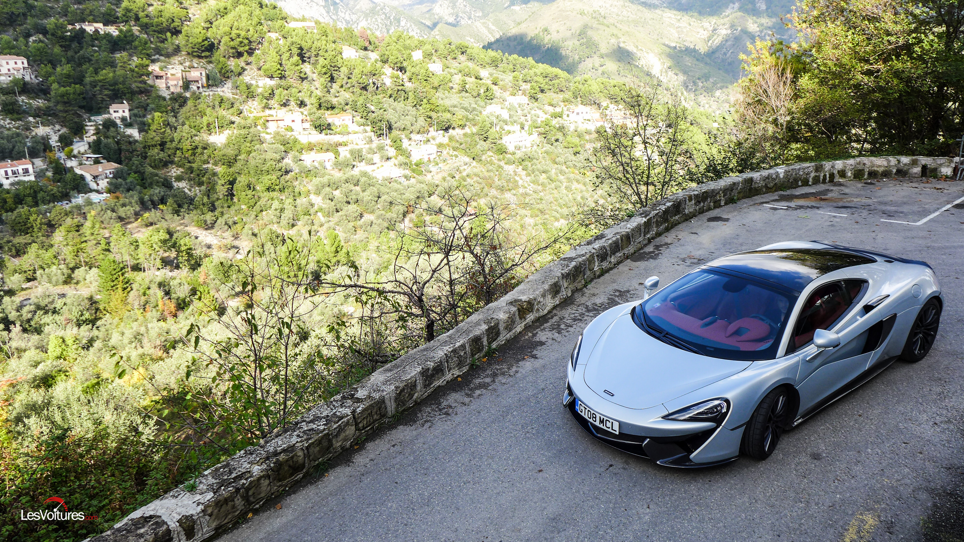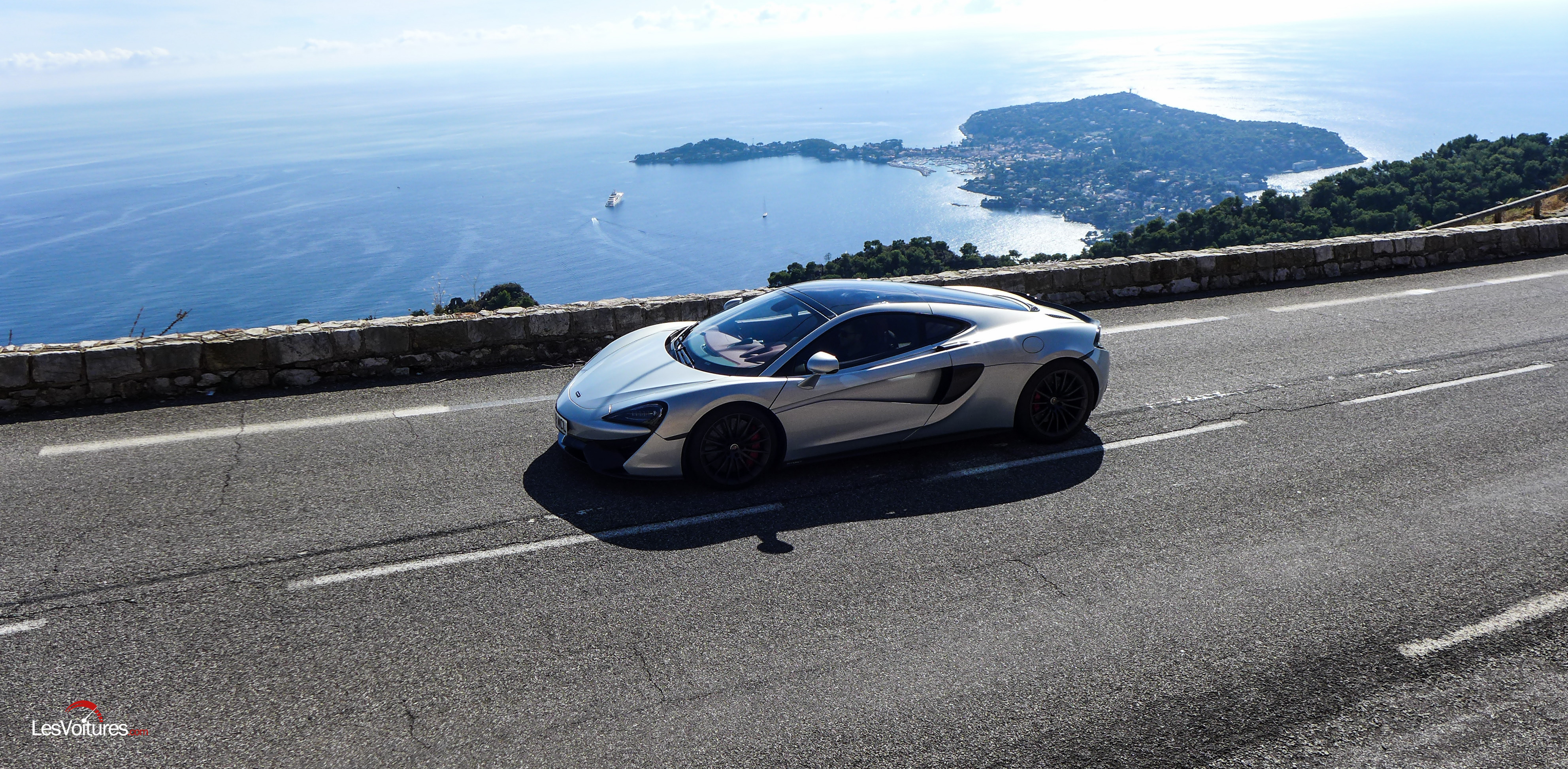 Une fois le village de Coaraze derrière nous, le Sud nous a offert un décor parfait pour faire ressortir la fluidité des lignes de la 570GT. Telles des pauses après l’effort, après être redescendus de la zone rouge, chaque ville, ou bord de mer ont été l’occasion de mettre en exergue le fabuleux design à l’aérodynamique exemplaire de la 570GT.
