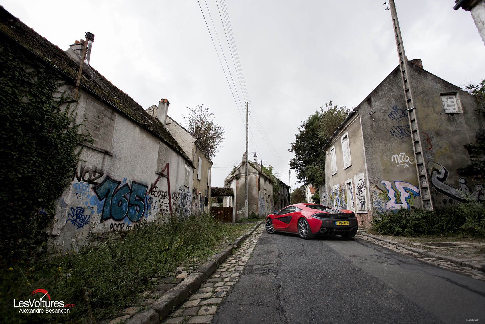 Malgré la présence de la suralimentation, la McLaren 570S n’a pas à rougir en matière de sonorité, les automobilistes du Duplex de l’A86, limité à 70 km/h, doivent encore s’en souvenir. Puisque l’on évoque une vitesse excessivement réduite pour la McLaren dans le tunnel, en chiffres, celle-ci abat le 0 à 100 km/h en 3,2 s. Sa vitesse maximale est de 328 km/h. De quoi vous envoyer dans un autre univers à l’image de l’atmosphère dégagée par le village fantôme du Vieux-Pays de Goussainville.