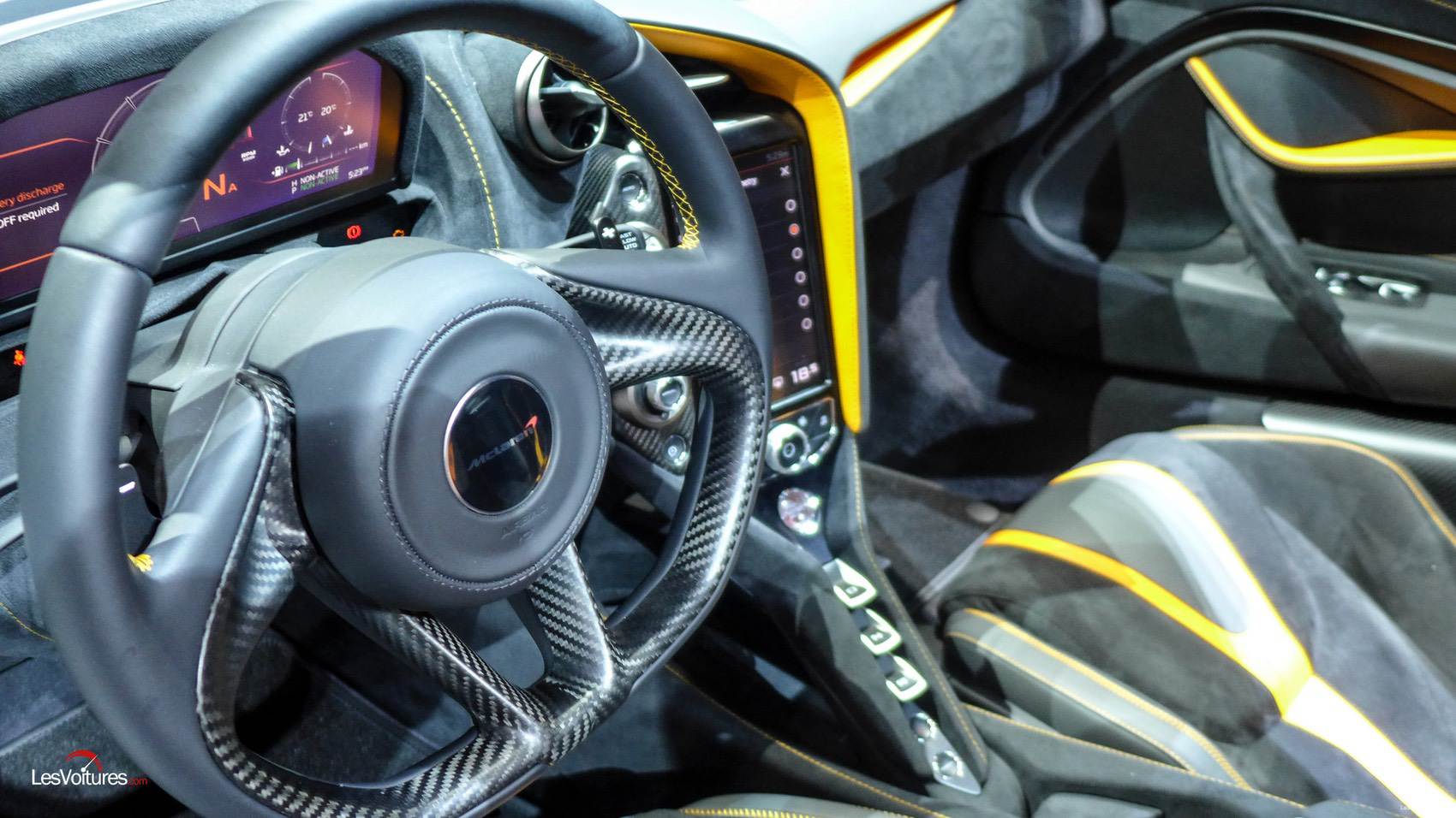 A l’intérieur, McLaren progresse et innove à tous les niveaux avec notamment un écran digital qui pivote sur lui-même pour laisser place à un compteur numérique high-tech. La console centrale, très fine, accueille quant à elle les différents boutons de sélection de la boîte.