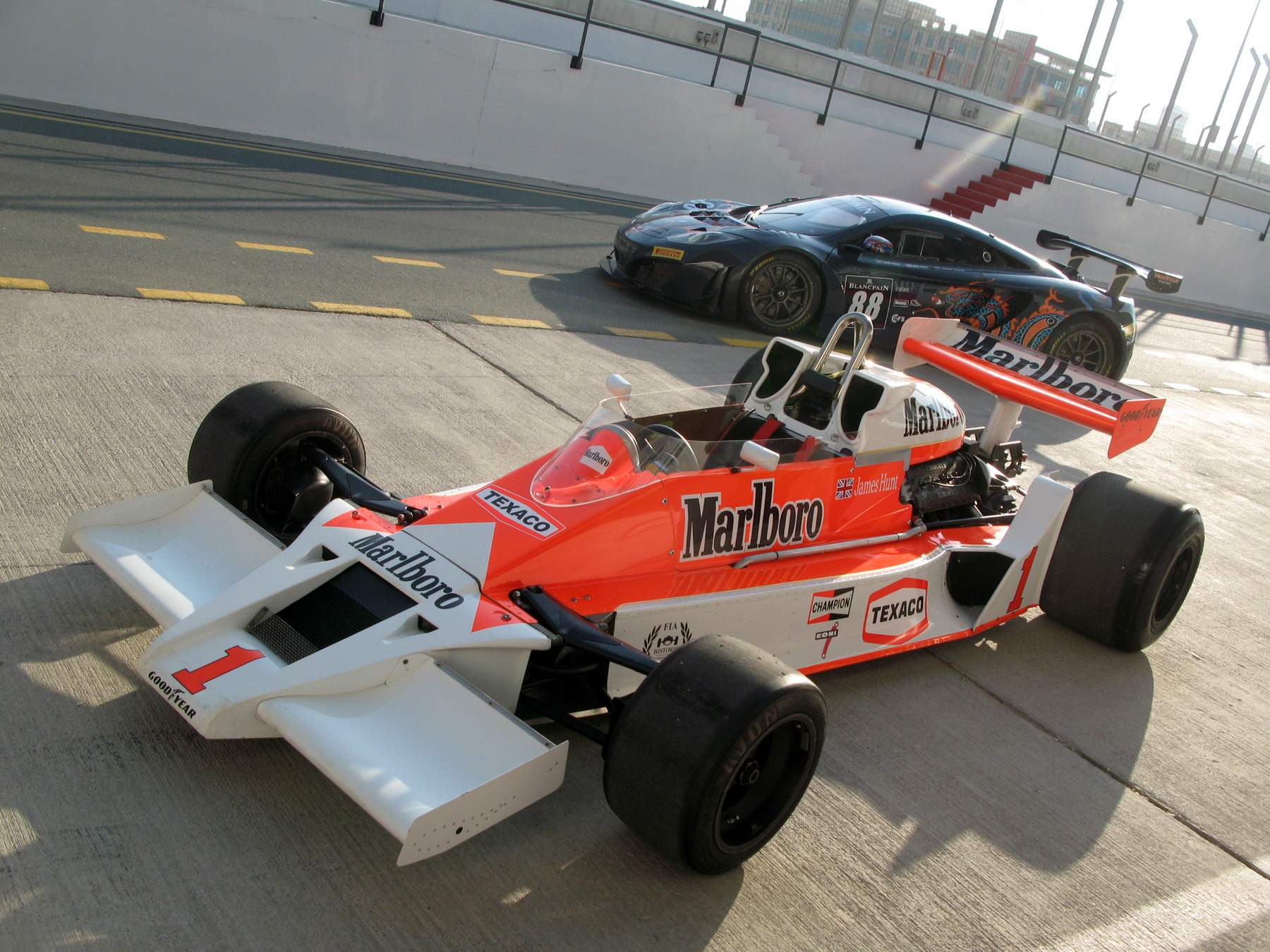 James Hunt a remporté son dernier Grand Prix de Formule 1 au Japon en 1977 à bord de la McLaren M26. Nos confrères de Crank & Piston nous proposent une rencontre entre la monoplace de Hunt et la 12C GT3 du VonRyanRacing. La McLaren de 77 est en parfait état. Rappelons qu’elle était motorisée par le V8 Ford Cosworth DFV de 3,0 litres. Place à la vidéo…