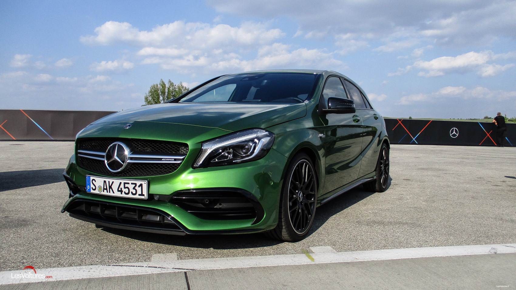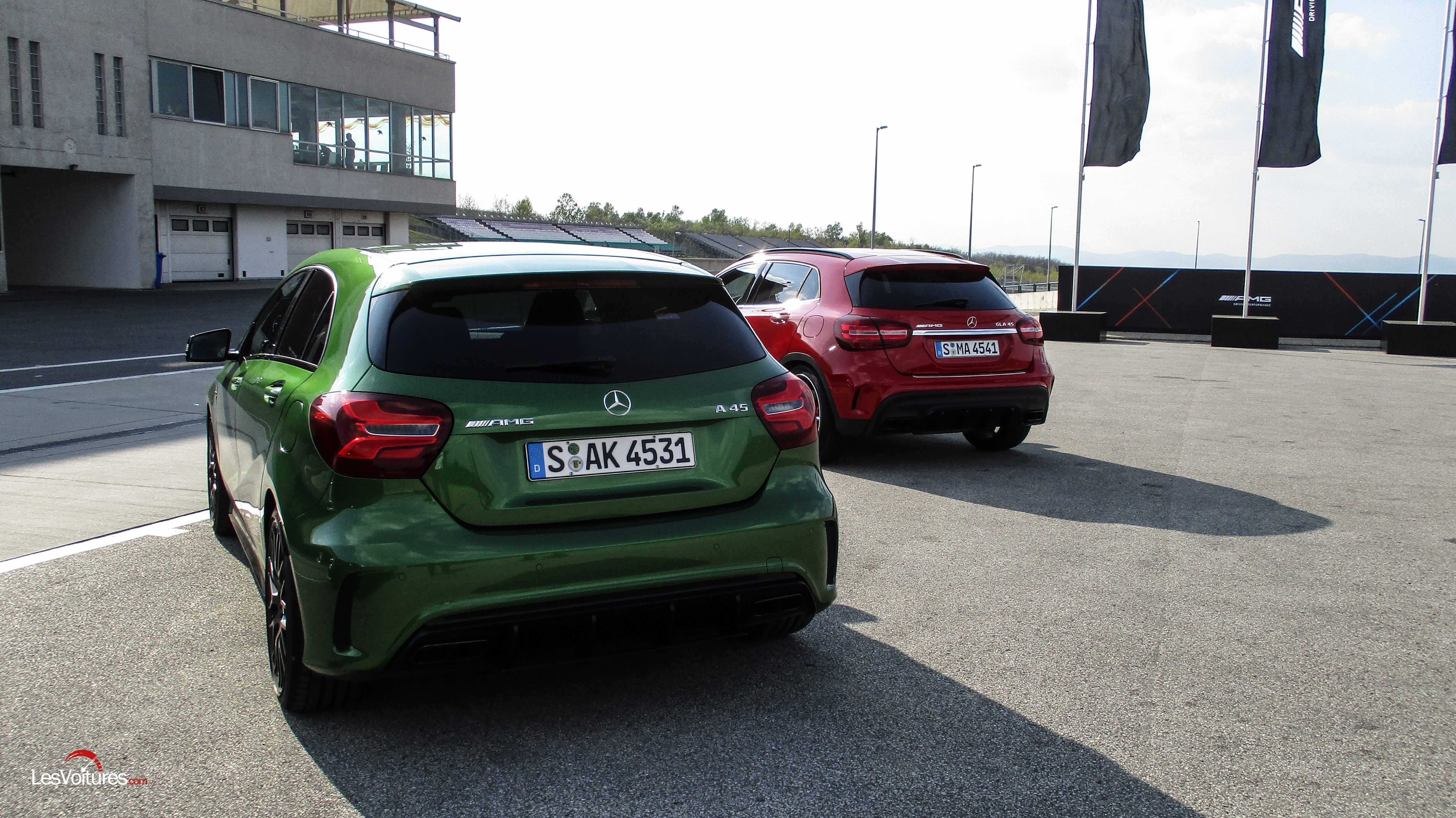 Qui dit compacte dit qui va en dehors de la ville, l’occasion pour nous de prendre l’autoroute en direction du fameux circuit du Hungaroring où la division AMG nous attendait de « cylindres fermes ». Classe A AMG de 381 ch (le plus puissant 4-cylindres au monde) pour les essayeurs et AMG GT S pour les pilotes grrrrrrr ! Même si, clairement, une classe A n’est pas faite pour une utilisation pure en circuit, il faut bien avouer qu’elle ne se débrouille pas trop mal, surtout sur ce tracé sinueux, aux très nombreux virages dont le surnom est le « tourniquet ».