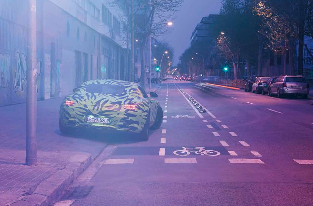 La Mercedes-AMG GT sera motorisée par le bloc « M178 » de 4,0 litres, un V8 biturbo qui développe 503 chevaux pour 650 Nm de couple. La boîte de vitesses sera à double embrayage. Quant au châssis, il sera composé d’aluminium. Vivement la rentrée ! Voici toutes les photos de la Supercar à l’étoile camouflée en zébre fluo. Elle sera disponible en 2015.