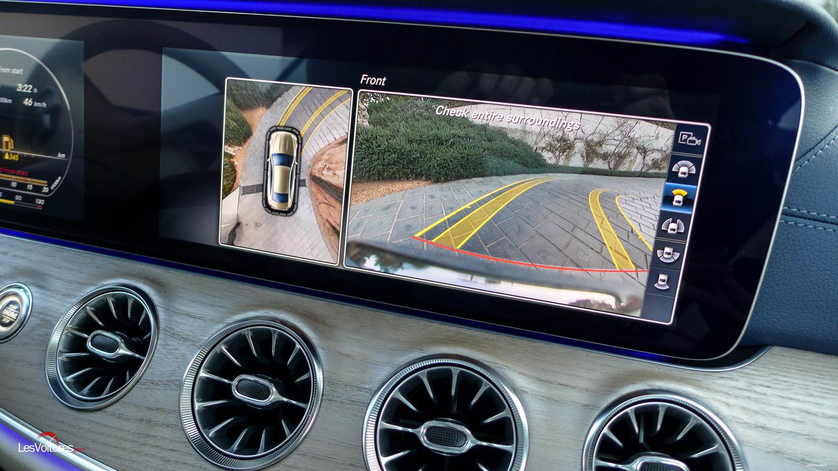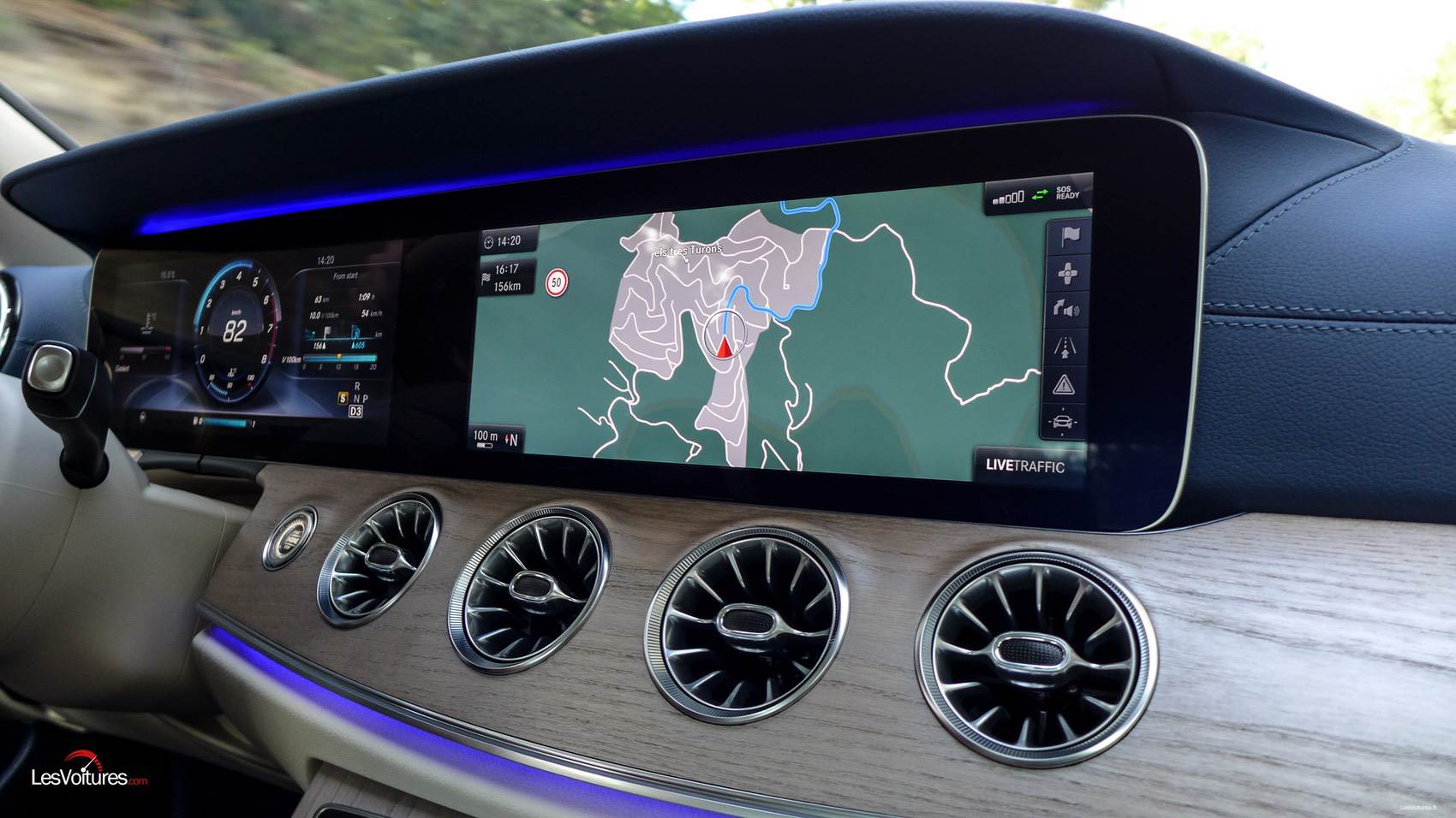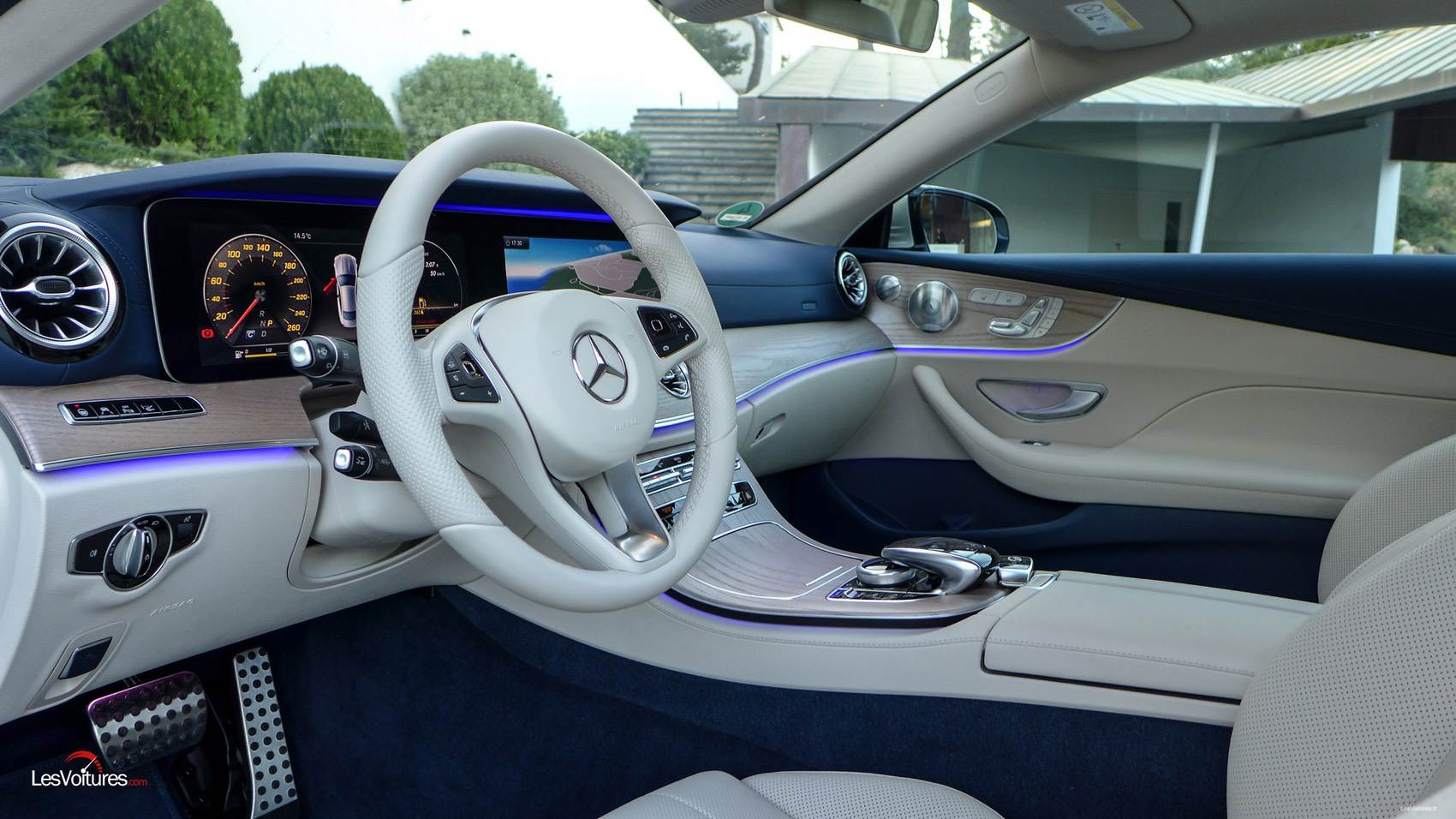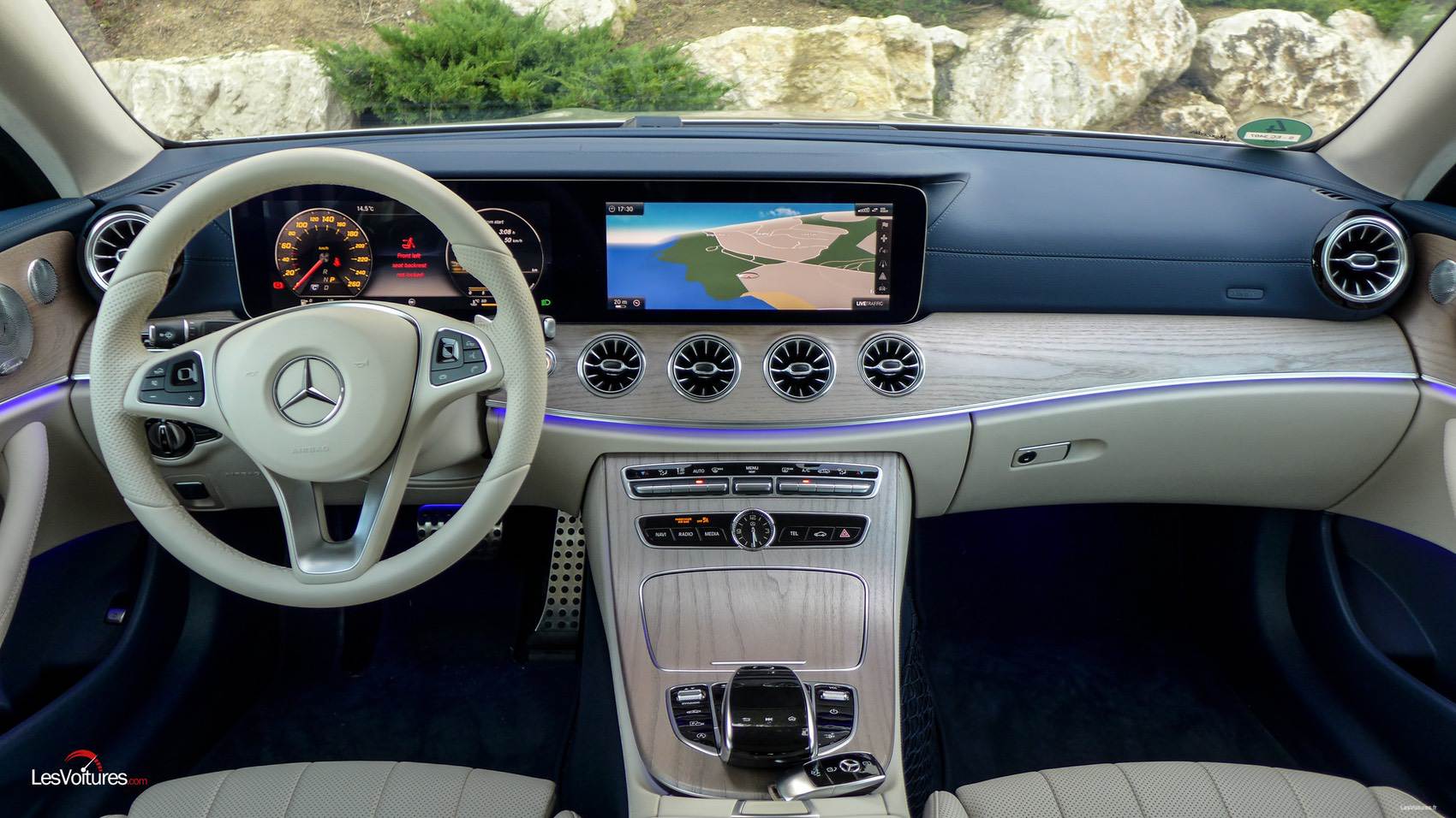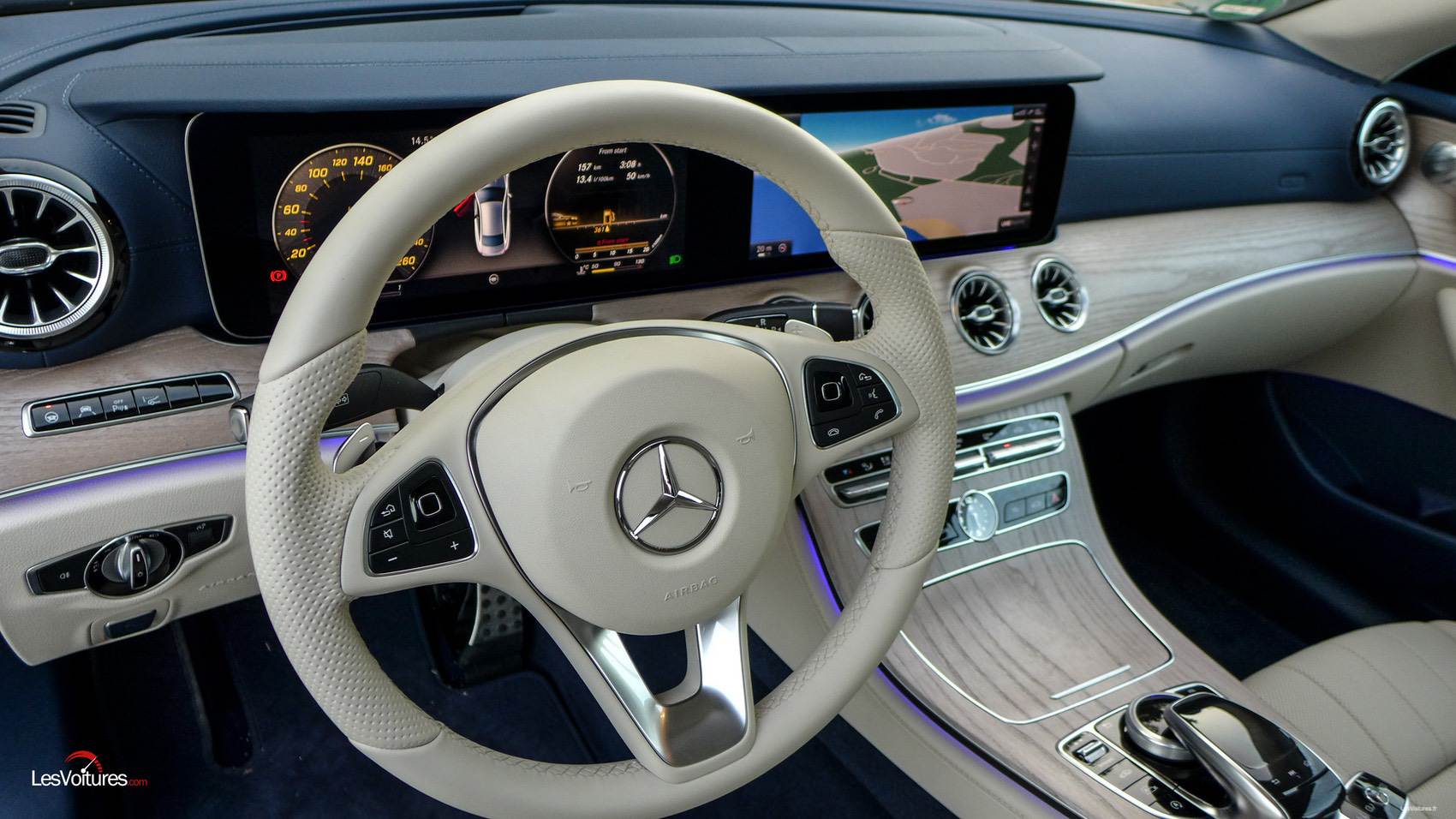 Comme pour la Classe E Coupé, cet espace de vie au confort sans égal regorge de technologies et autres outils pour mieux vous faire vivre la route. Et faut-il évoquer la qualité de finition ? La réponse est étonnamment oui car le plastique bleu des contre-portes risque fort de très mal vieillir. Mais, les potentiels acheteurs configureront leur coupé très majoritairement avec le Beige Macchiato Brun Expresso. Quoi qu’il en soit, cette ambiance beige et bleue à le mérite d’exister et est synonyme d’une « singularité très Mercedes » (aucun rapport avec la singularité du film Interstellar cité auparavant). A noter également au programme des nouveautés l’apparition d’aérateurs aux formes inspirées par l’aéronautique.