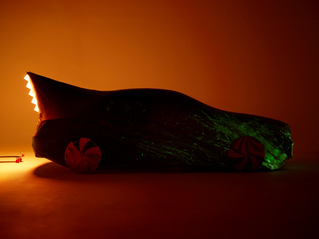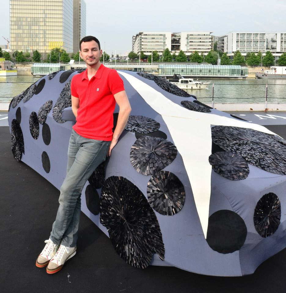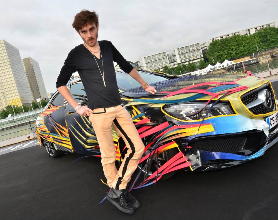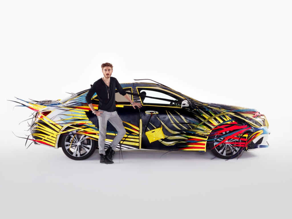 Six berlines de la marque à l’étoile ont été habillé par six jeunes créateurs. Commençons par la plus extravagante des CLA revue par Nicolas Theil. L’artiste français a fait du cuir sa matière de prédilection et il tient son inspiration du Japon, là où il vit. Les femmes rêveront de posséder le superbe sac à main jaune !