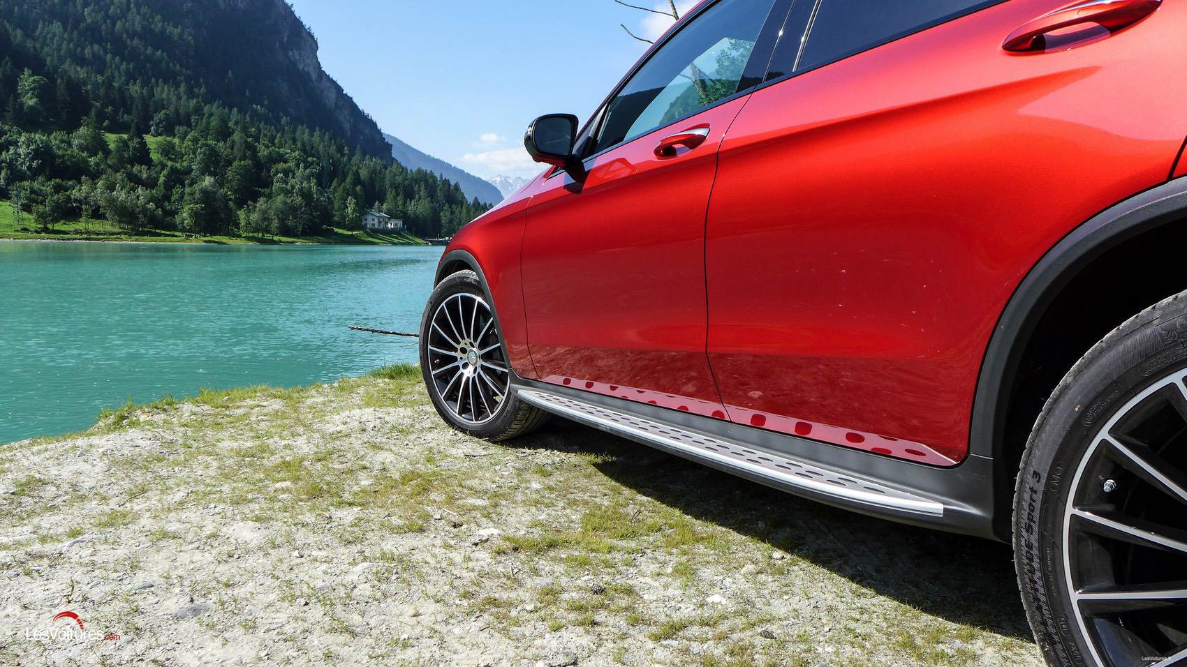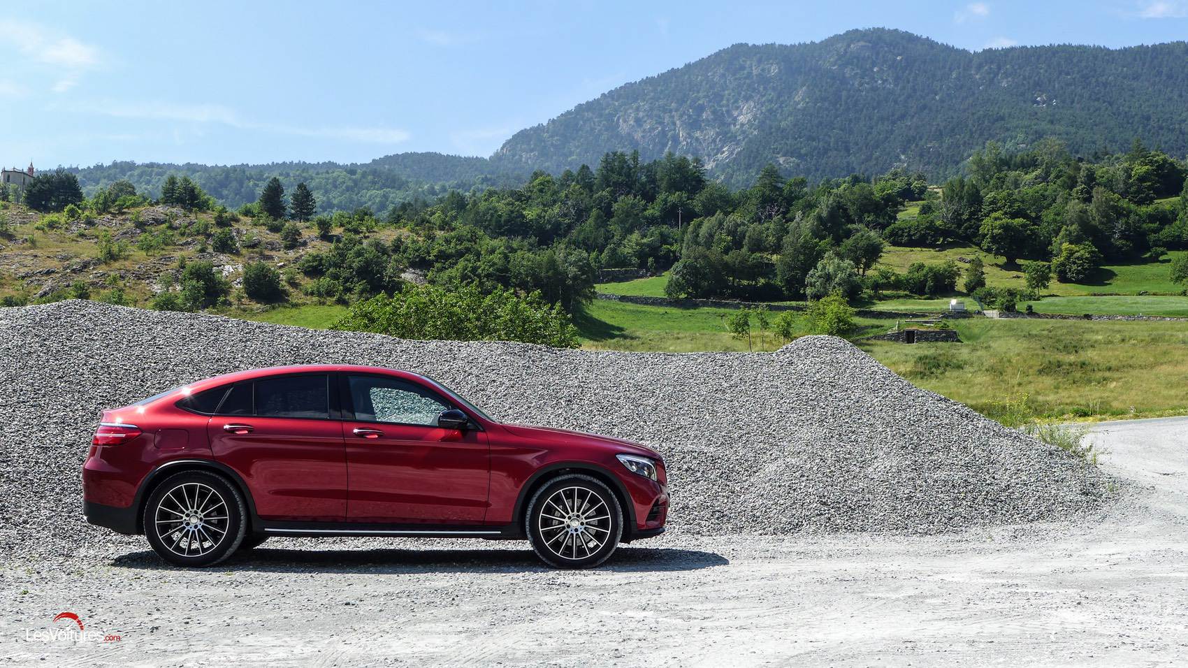 Perchée sur ses jantes multibranches bicolores 20″ AMG (option : 1 050 €), notre flamboyante version d’essai Rouge jacinthe métallisée designo, option très coûteuse à 1 500 €, est une invitation à avaler les lacets des cols italiens ! Pour être tout à fait précis, le GLC Coupé de cet essai profite de la très haut de gamme Ligne Fascination qui porte si bien son nom…