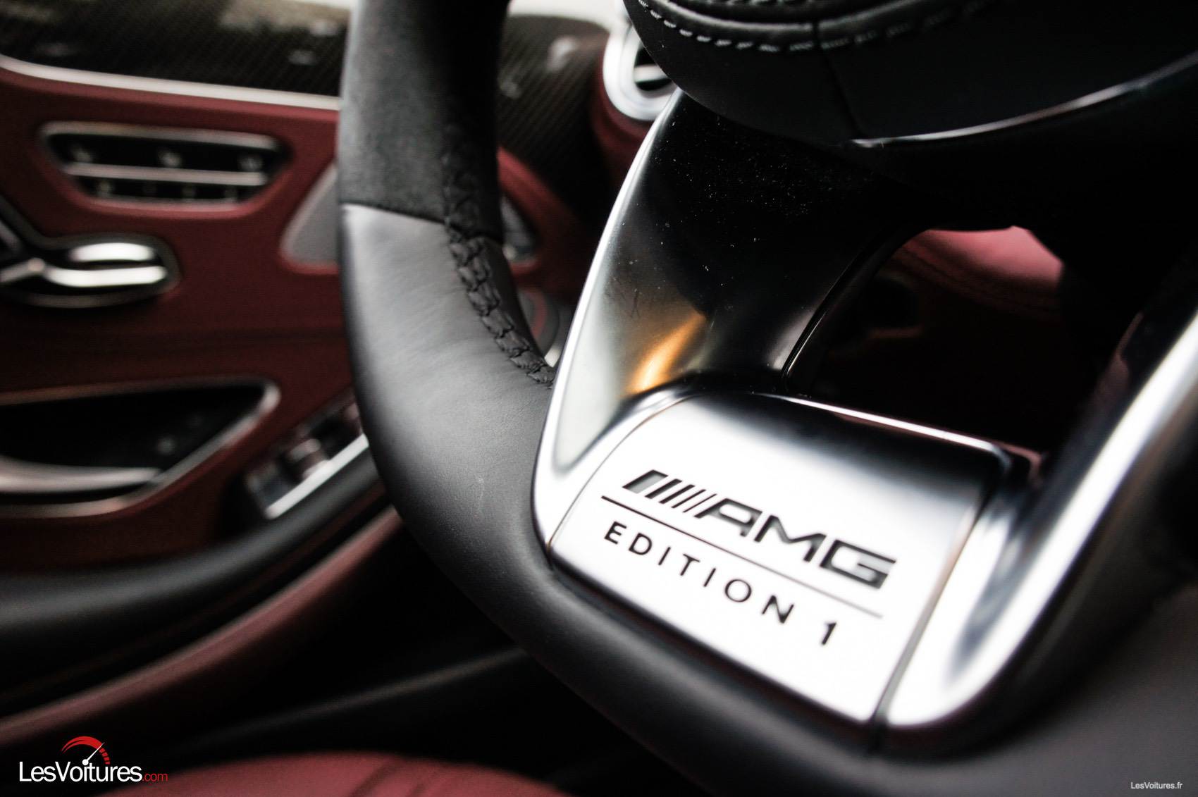 La Mercedes S36 AMG n’en reste pas là pour marquer de son prestige le luxe de son habitacle avec, entre autres, les baguettes de seuil avec inscription « AMG », les sièges sport avec maintien latéral optimisé, l’emblème estampé sur l’accoudoir central avant, la clé électronique façon chrome. Entre les mains, le magnifique volant n’est pas oublier avec la marque de fabrique aux trois lettres de notre modèle d’essai : la Série spéciale Edition 1.