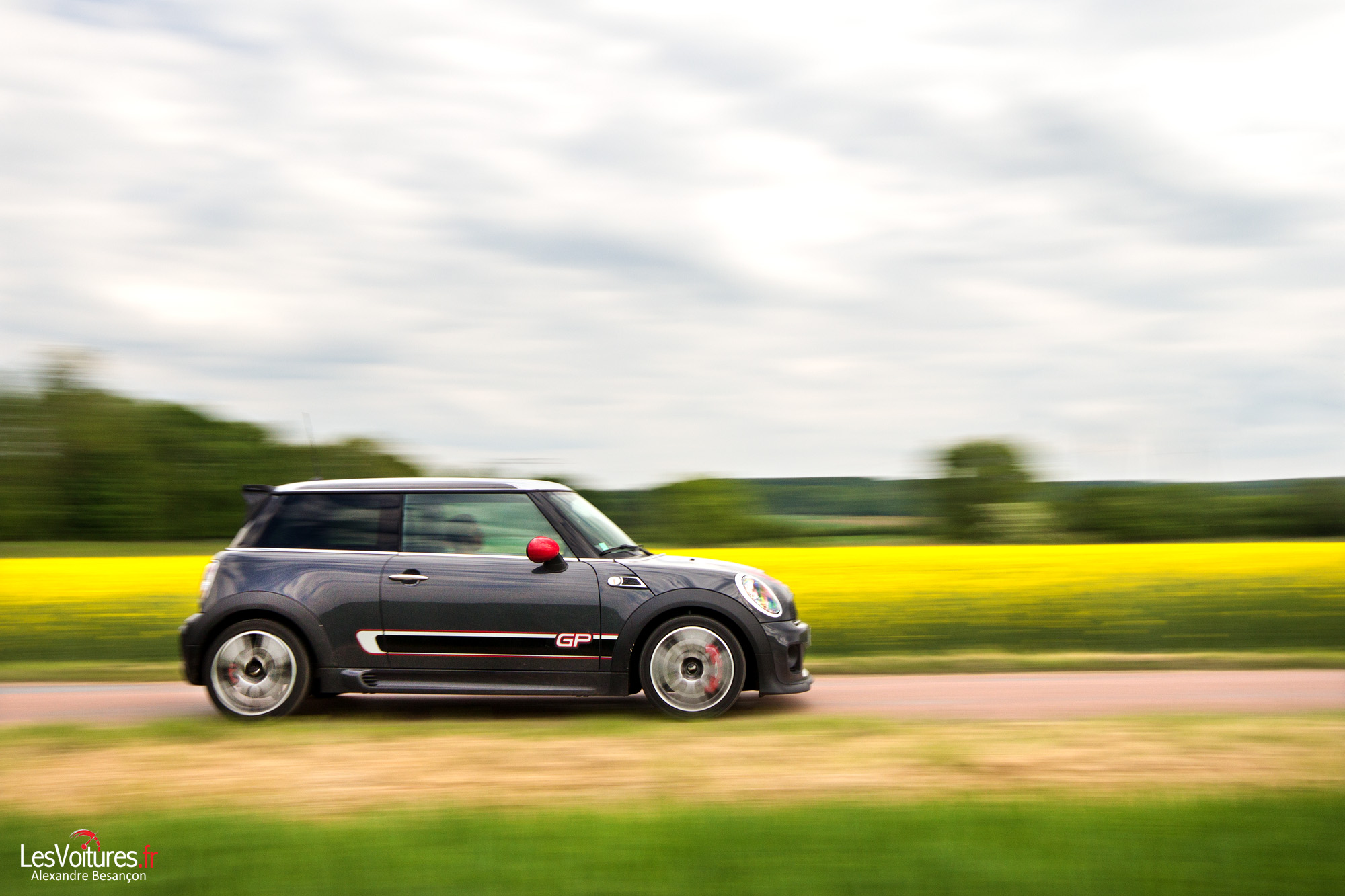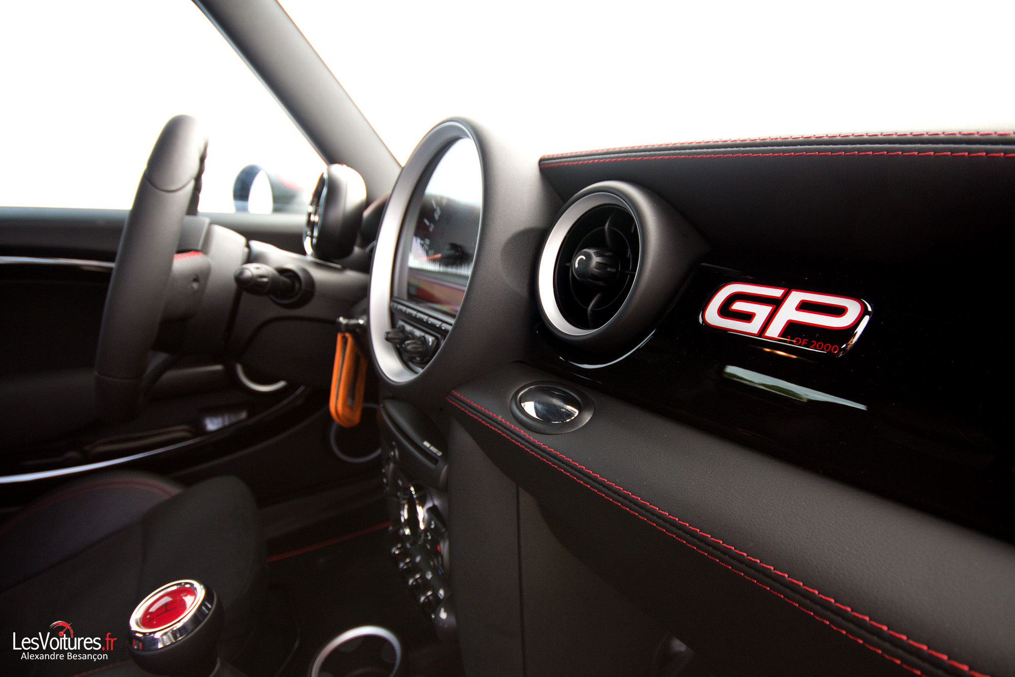 Les performances et les qualités dynamiques de la MINI JCW GPII ont en effet de quoi créer des tensions au sein de la famille. Le moteur modifié 1,6 litre turbocompressé de la plus sulfureuse des MINI développe 218 chevaux et propose un couple de 260 Nm voir 280 Nm avec la fonction « Overboost ». A l’accélération il faut maîtriser la petite bombe mais pour encore plus d’adrénaline ! Les défauts de la MINI GPII procurent tellement de plaisir qu’on les rebaptise aussi vite en traits de caractère et pas des moindres. Peu confortable mais très ferme, l’auto est littéralement scotché à la route grâce aux suspensions à ressorts optimisées et réglables. Un trousseau de clés est livré avec la voiture afin de les élever ou les abaisser.