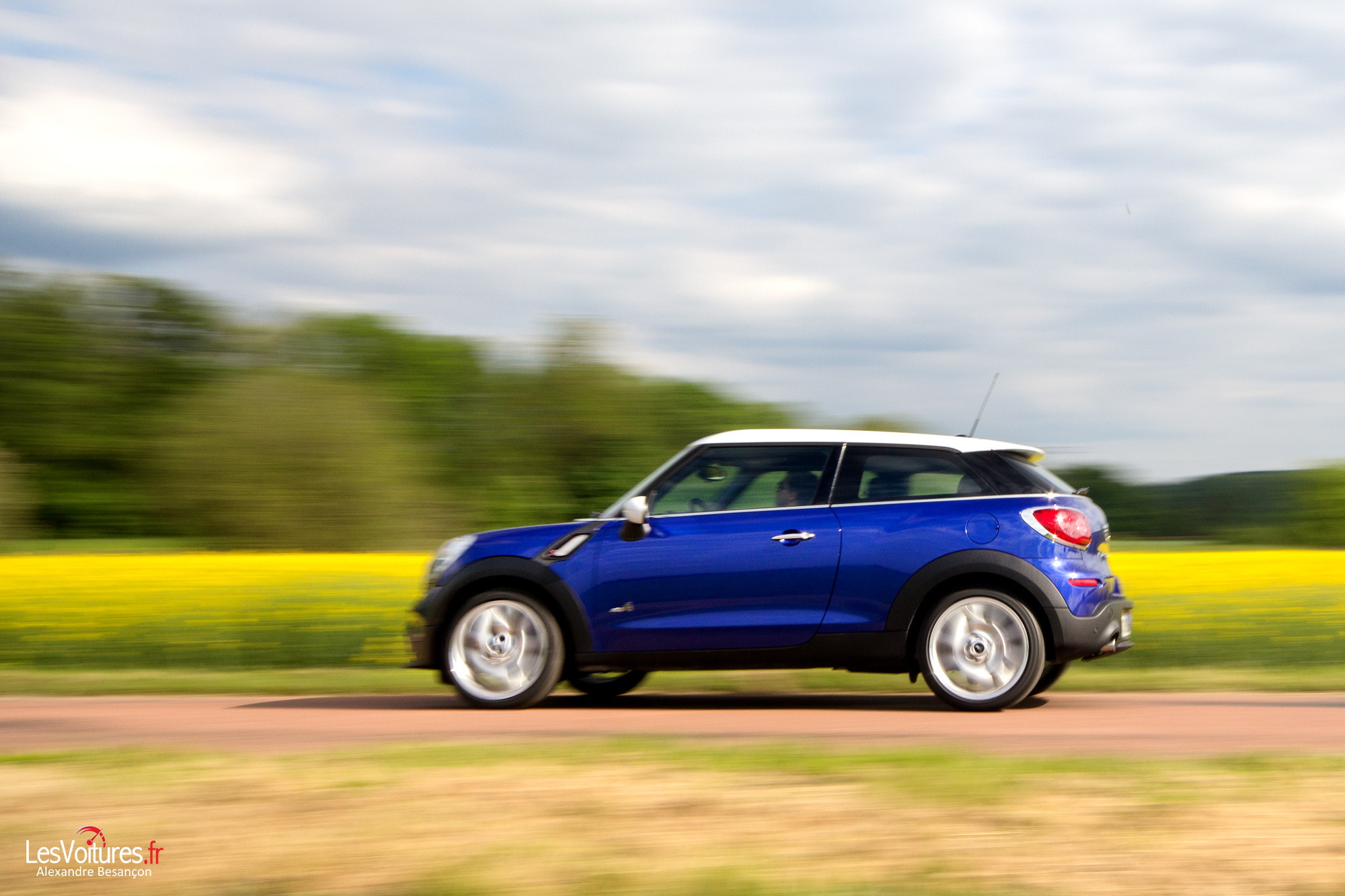 Même si le comportement du Paceman est forcément pataud face à la GPII, il est néanmoins plus que correct pour une auto très haute. Il est même très réactif et joueur notamment en mode Sport ! Les quatre roues motrices All4 apportent une polyvalence à toute épreuve sur les routes de campagne. Joueurs comme nous sommes, nous sommes passés de la MINI JCW GPII à la Paceman en un clin d’œil et c’est un exercice de conduite drôle : de l’extrême, de l’ultra dureté à la souplesse et au confort…