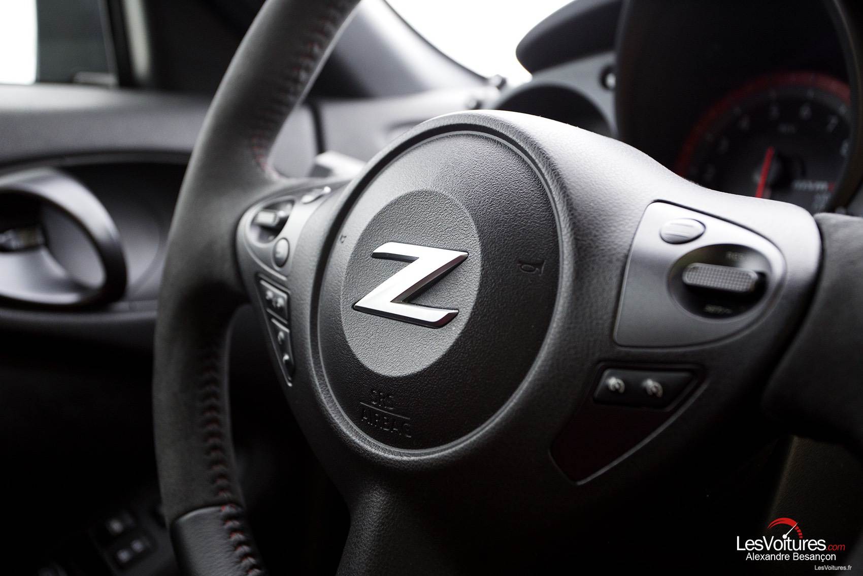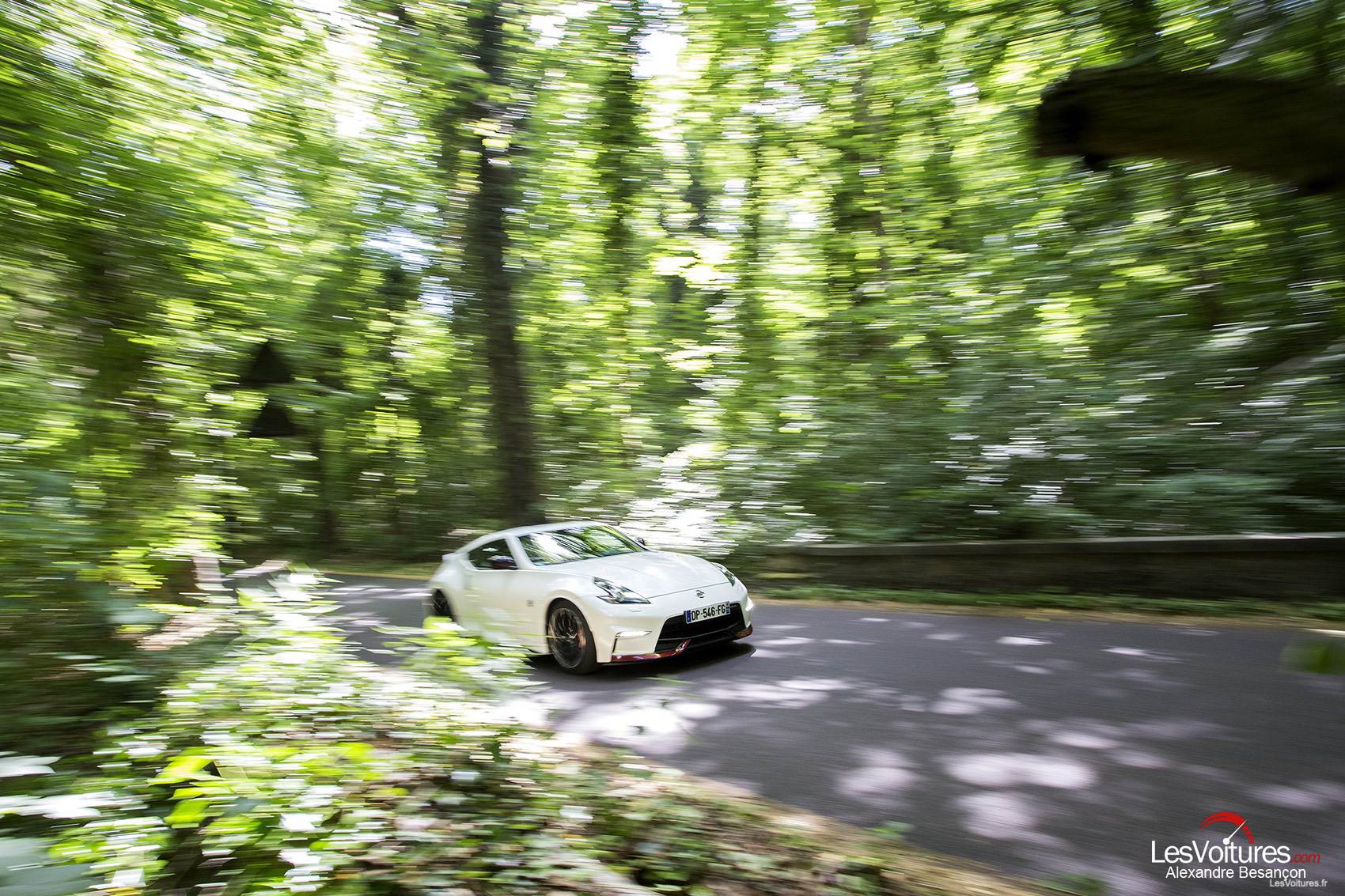 Place à nos sensations ressenties au volant du 370Z NISMO. Pour commencer, il est important de louer la qualité des sièges Recaro qui offrent une assise remarquable et une position de conduite idéale. Une fois le 3.7 l V6 sur ON, et dès les premiers tours de roues, on ressent immédiatement que l’on est à bord d’un bolide typé course. La commande de boîte est ferme et directe, comme la direction, le châssis et les liaisons au sol du 370Z NISMO. Ce dernier est bel et bien le petit frère de la GT-R NISMO avec des bruits mécaniques aux passages de rapports qui titillent nos oreilles. On adore ça, comme le son rauque de l’échappement !