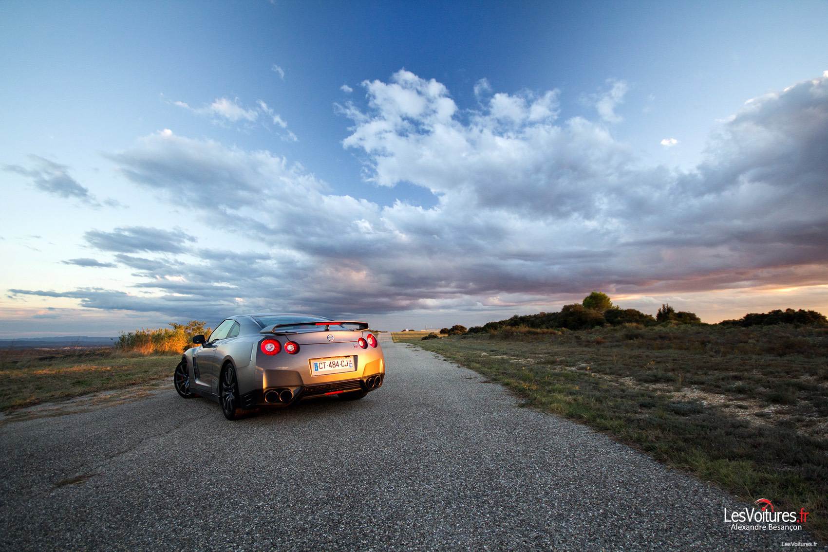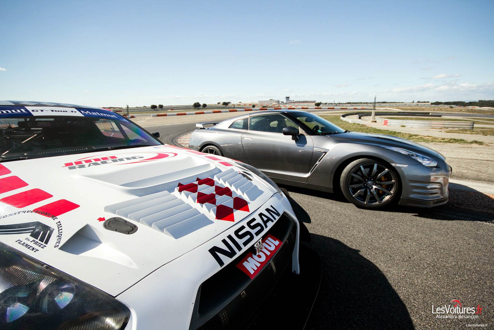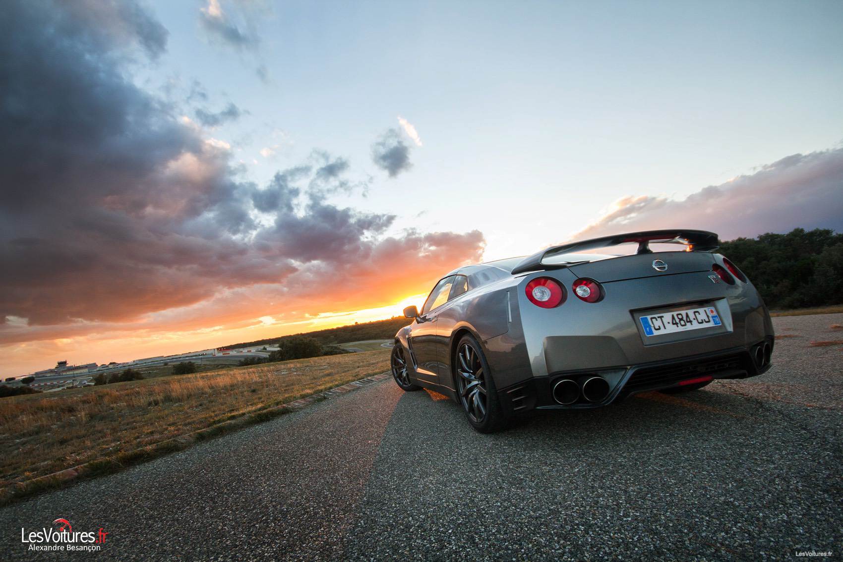 Les GT-R, qu’elles soient de série ou destinées à la compétition, représentent parfaitement le Japon par leurs aspects originaux et leurs performances. Pour terminer ce sujet en beauté, la Nissan GT-R du « pays du Soleil-Levant » se devait d’être sublimée par un soleil couchant. Maintenant vous connaissez les magnifiques paysages propres au circuit de Lédenon, que l’on aperçoit en arrière-plan.