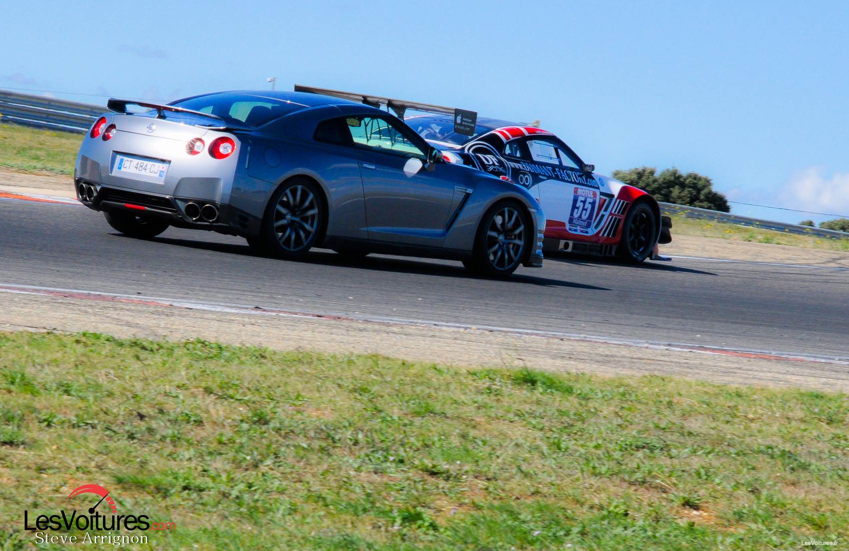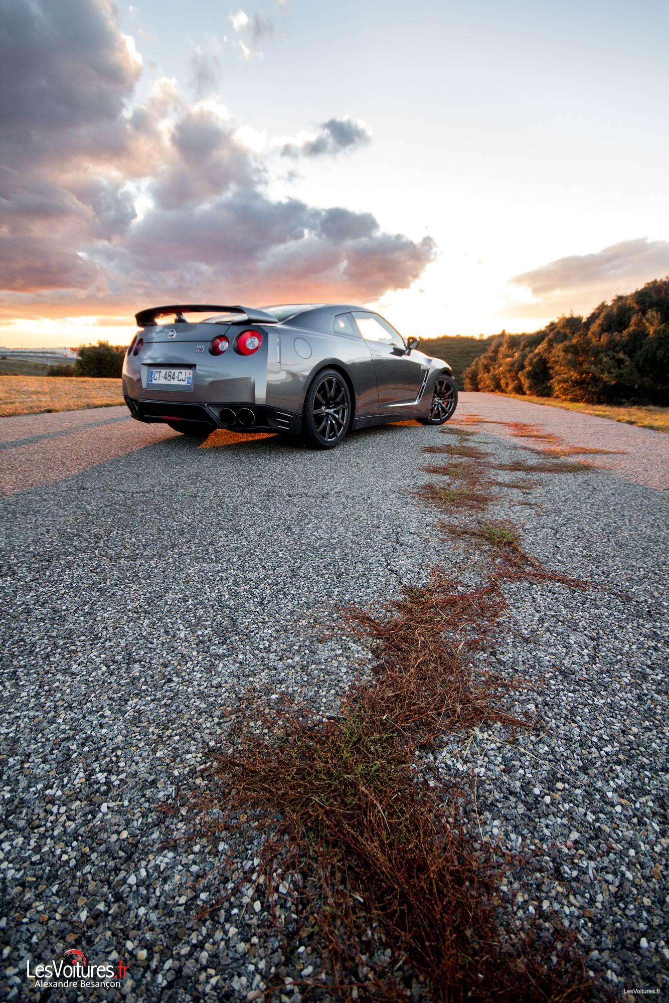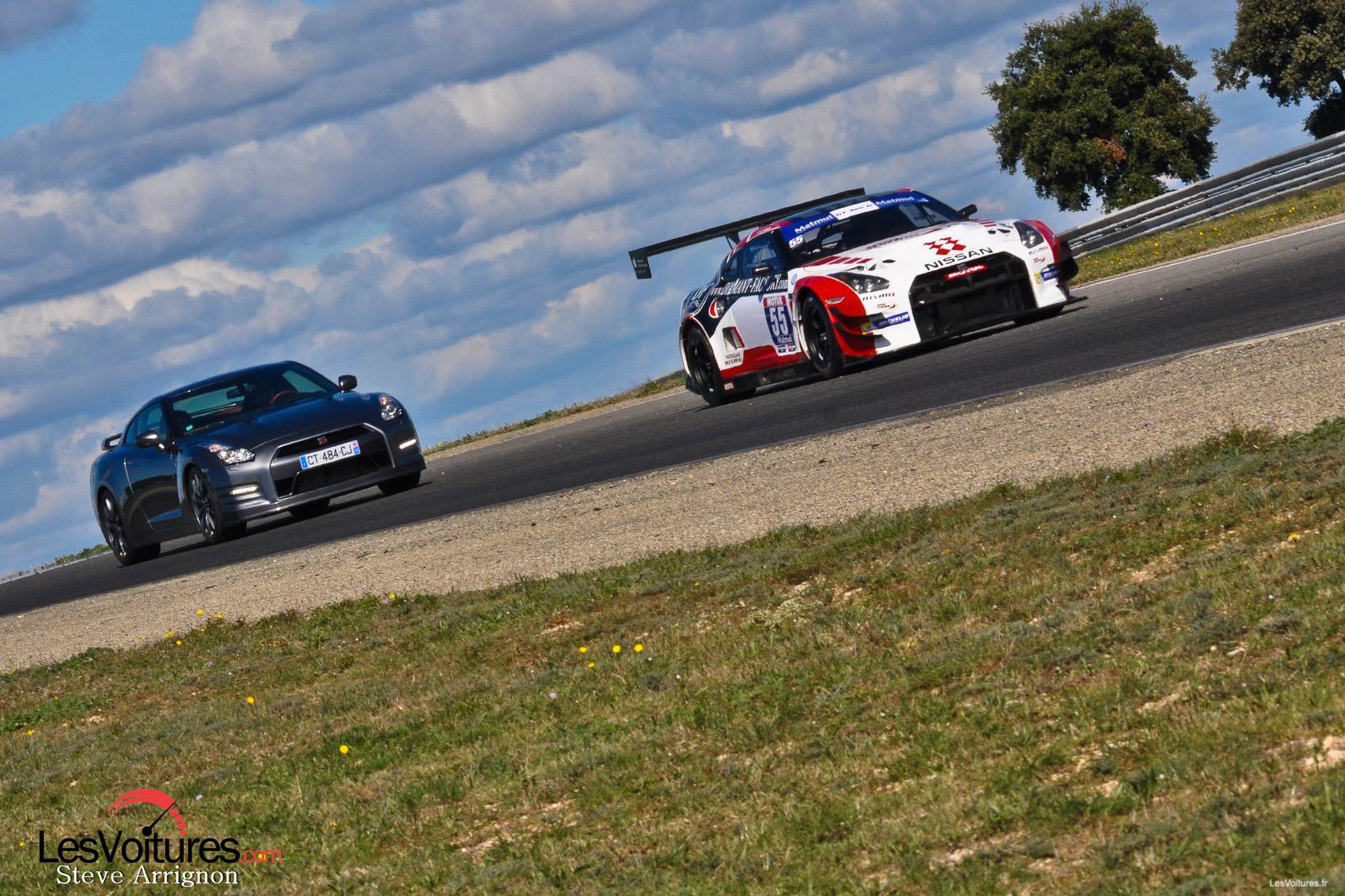 Les GT-R, qu’elles soient de série ou destinées à la compétition, représentent parfaitement le Japon par leurs aspects originaux et leurs performances. Pour terminer ce sujet en beauté, la Nissan GT-R du « pays du Soleil-Levant » se devait d’être sublimée par un soleil couchant. Maintenant vous connaissez les magnifiques paysages propres au circuit de Lédenon, que l’on aperçoit en arrière-plan.