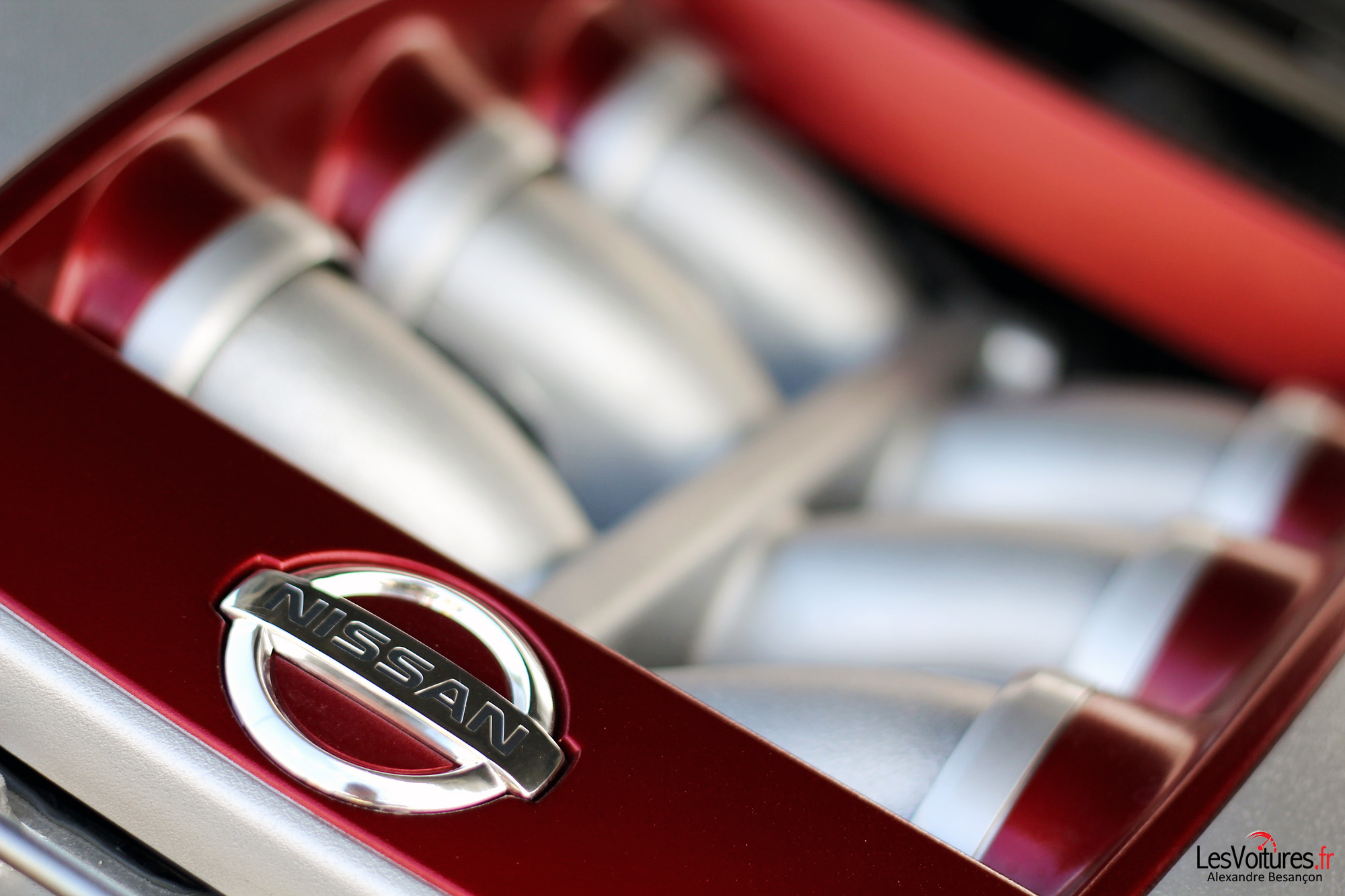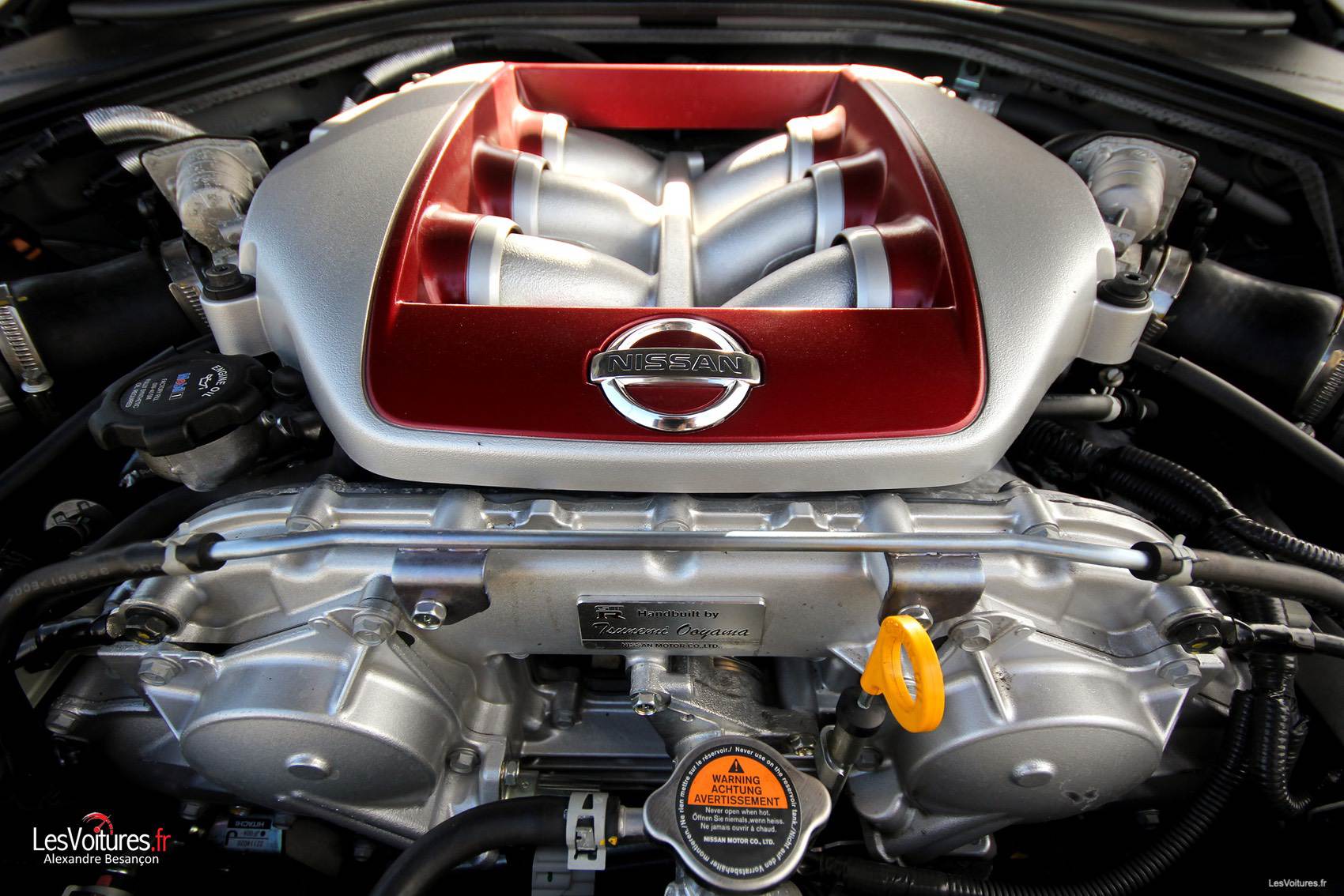 La GT-R Gentleman Edition est motorisée par un V6 biturbo de 3,8 litres. Il développe 550 chevaux pour un couple de 632 Nm, vitesse maximale : 315 km/h ! Orné de rouge le moteur, au nom de code VQ38DETT, nous apparaît comme un ensemble d’organes vivants dont l’assemblage à la main a été signé par son mécanicien : Tsunemi Ooyama.
