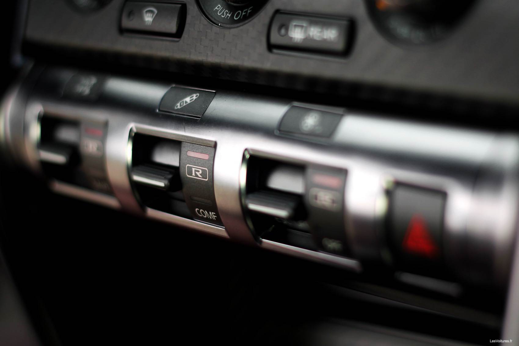 Celui de la GT-R porte bien son nom Gentleman Edition, cosy et avec des fonctions évoluées disponibles à l’écran. Venons-en au comportement routier de la GT-R de série. Vous l’aurez compris avec les chiffres précédemment cités, à l’accélération c’est époustouflant ! La « Muscle car » japonaise n’a que pour point commun son aspect mastodonte par rapport aux américaines. Car dynamiquement, elle est hyper efficace, elle se place facilement dans le courbes et reste scotchée à l’asphalte ! Son freinage est parfait, il faut bien pouvoir s’arrêter…