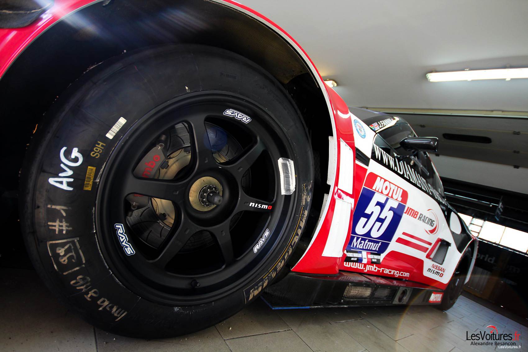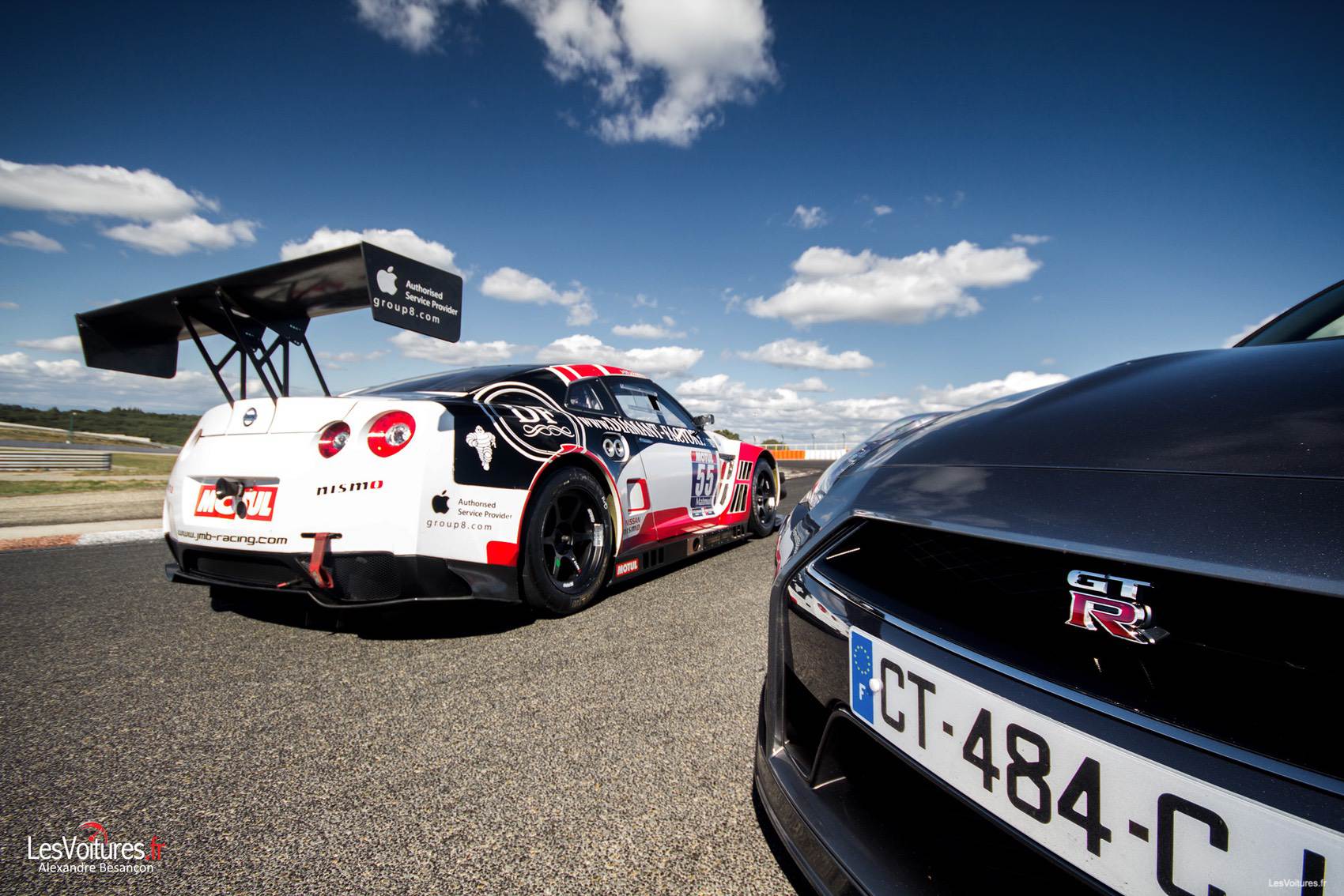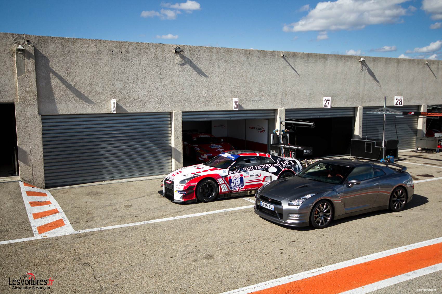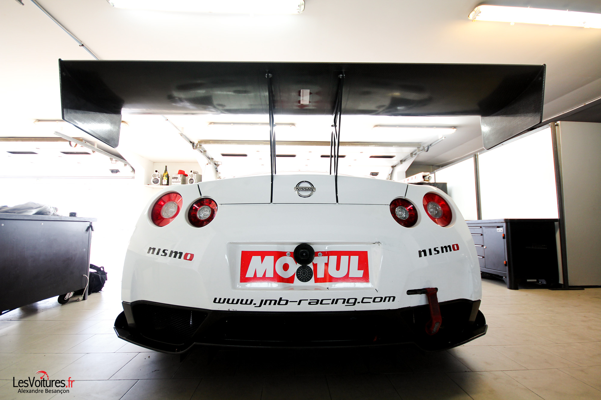 En compétition, la Nissan GT-R Nismo GT3 évolue dans différents championnats : GT Tour, FIA GT Series, Blancpain Endurance Series. Apparue en 2012, elle ne passe pas inaperçue en piste. Nicolas Misslin, patron du JMB Racing, nous explique pourquoi il a porté son dévolu sur la japonaise après une histoire sportive marquée par le cheval cabré : « Avec ses lignes et sa conception, la Nissan GT-R Nismo GT3 se démarque de toutes les autres GT3. L’expérience et la notoriété de JRM nous ont fait nous intéresser à ce produit. Le fait que la Nissan n’est que très peu présente en course nous a interpellé. L’équipe JMB affectionne particulièrement les défis et challenges. » En effet, le JMB Racing a toujours été précurseur en termes de lancement de nouveaux modèles en compétition, comme avec Ferrari, Nicolas poursuit sur ce point : « Notre structure de compétition est à l’initiative du retour de Ferrari en GT. En 2001, JMB Racing s’est engagé en FIA GT et GT FFSA avec trois F360 NGT alors que la version GT n’était pas commercialisée et a remporté les deux titres face à une armada de Porsche. En 2013, avec le choix de la Nissan GT-R Nismo GT3, nous avons souhaité nous démarquer et développer un partenariat privilégié avec JRM et Nissan en mettant à leur disposition toute l’expérience et l’expertise du JMB Racing en GT. Et pour finir, comme vous avez certainement pu le constater lors de l’essai, la Nissan GT-R Nismo GT3 ne manque pas d’atouts pour attirer les regards, son look très caractéristique et agressif reste très apprécié par un grand nombre de passionnés mais surtout par l’ensemble de nos partenaires. » Nous reviendrons plus tard sur l’histoire du JMB Racing car il est tant de se concentrer sur les cœurs de nos deux « Godzilla ».