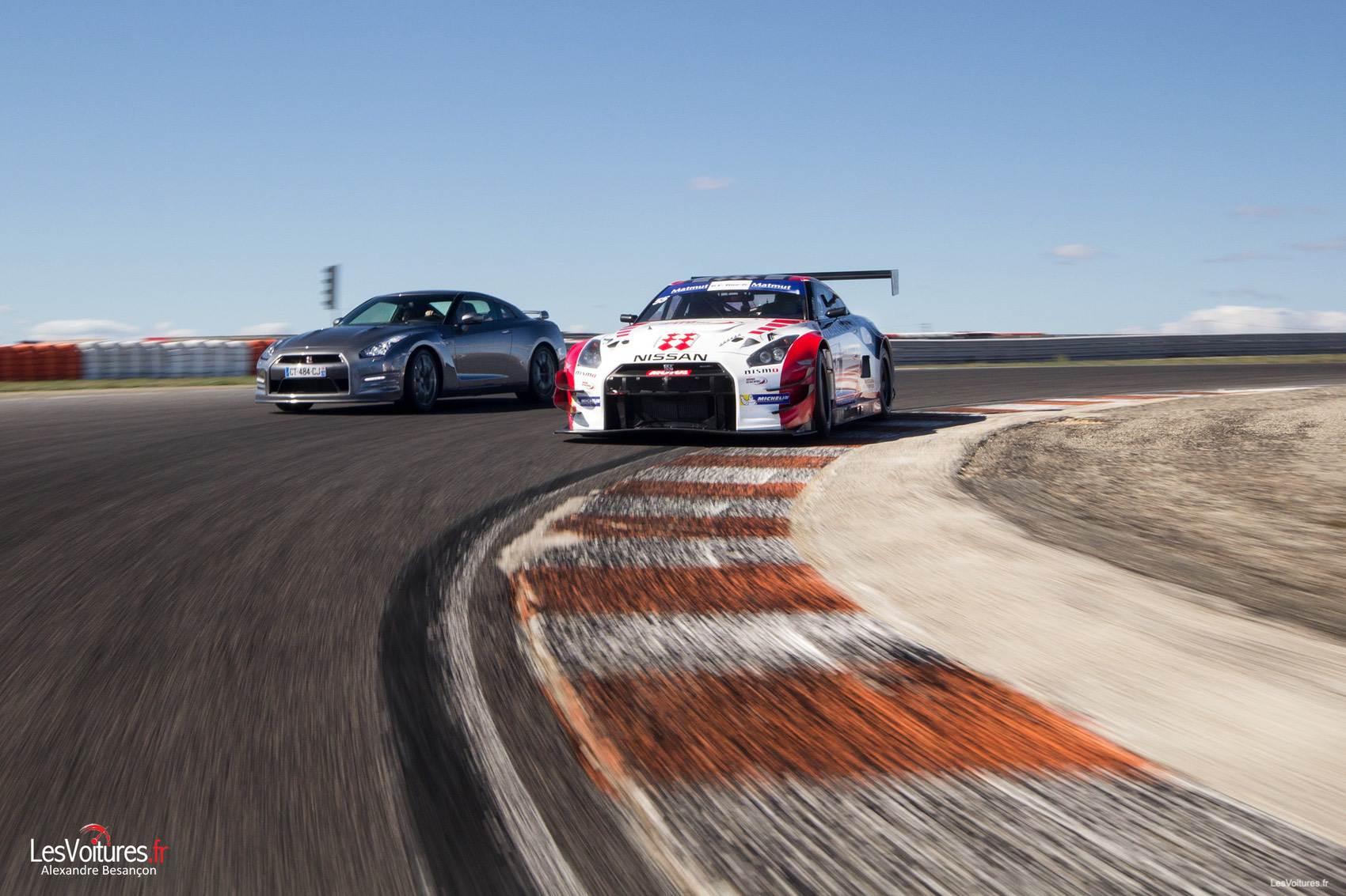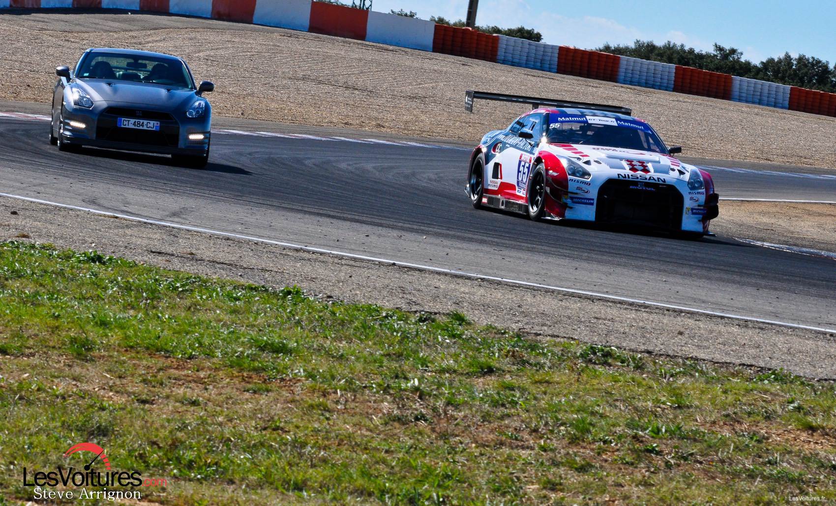 La Nissan GT-R de série mérite donc bien de goûter aux vibreurs d’un circuit accompagnée de sa grande sœur de compétition. Et à voitures atypiques, circuit atypique. Ainsi le circuit de Lédenon, planté en haut de son rocher nîmois, est le lieu parfait pour cet exercice. Tel un grand huit, ce superbe tracé (à notre avis trop peu médiatisé) offre tous les styles de courbes possibles, des montées, des descentes à couper le souffle ! C’est donc dans le cadre de la 6ème étape du GT Tour 2013 à Lédenon (12 et 13 octobre) que le JMB Racing Team, qui engage la GT3 en championnat de France GT FFSA, a donné rendez-vous à la GT-R Gentleman Edition, exemplaire 1 sur 10 s’il vous plaît !