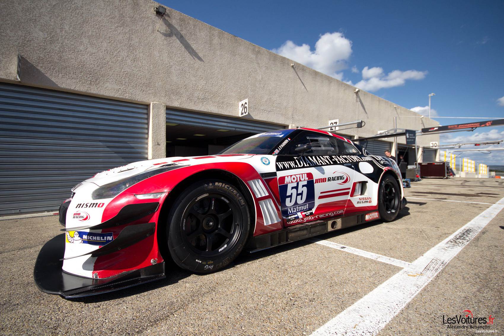 Aujourd’hui et fort de son expérience dans le Sport Automobile, JMB Racing a créé le JMB Exclusive Club, dédié aux passionnés d’automobiles d’exception. Ce club propose différentes formules à la carte : un espace dédié au stockage de voitures, l’entretien et le suivi des voitures de leurs clients, des « Track Days » à la journée ou en formule « créneaux club » et bien d’autres services. Le JMB Racing propose également aux entreprises et aux particuliers, via son pôle évènementiel, JMB Event, l’organisation sur mesure et entièrement personnalisée d’évènements. Une chose est sûre, le JMB Racing dispose d’un des circuits le plus modernes au monde, le Paul Ricard HTTT, là ou sa structure est installée. Et c’est d’ailleurs sur ses terres, que l’unique Nissan Nismo GT-R GT3 #55 française retrouvera la piste. Ce sera dans le cadre de la finale du GT Tour 2013 les 26 et 27 octobre prochains. Ceux qui ne seront pas sur place pourront profiter de cette grande fête du Sport Auto français à la télévision car les deux courses seront diffusées en direct sur Europsort. En attendant, voici la Nissan GT-R Nismo GT3 à l’attaque à Magny-Cours (GT Tour – septembre 2013).