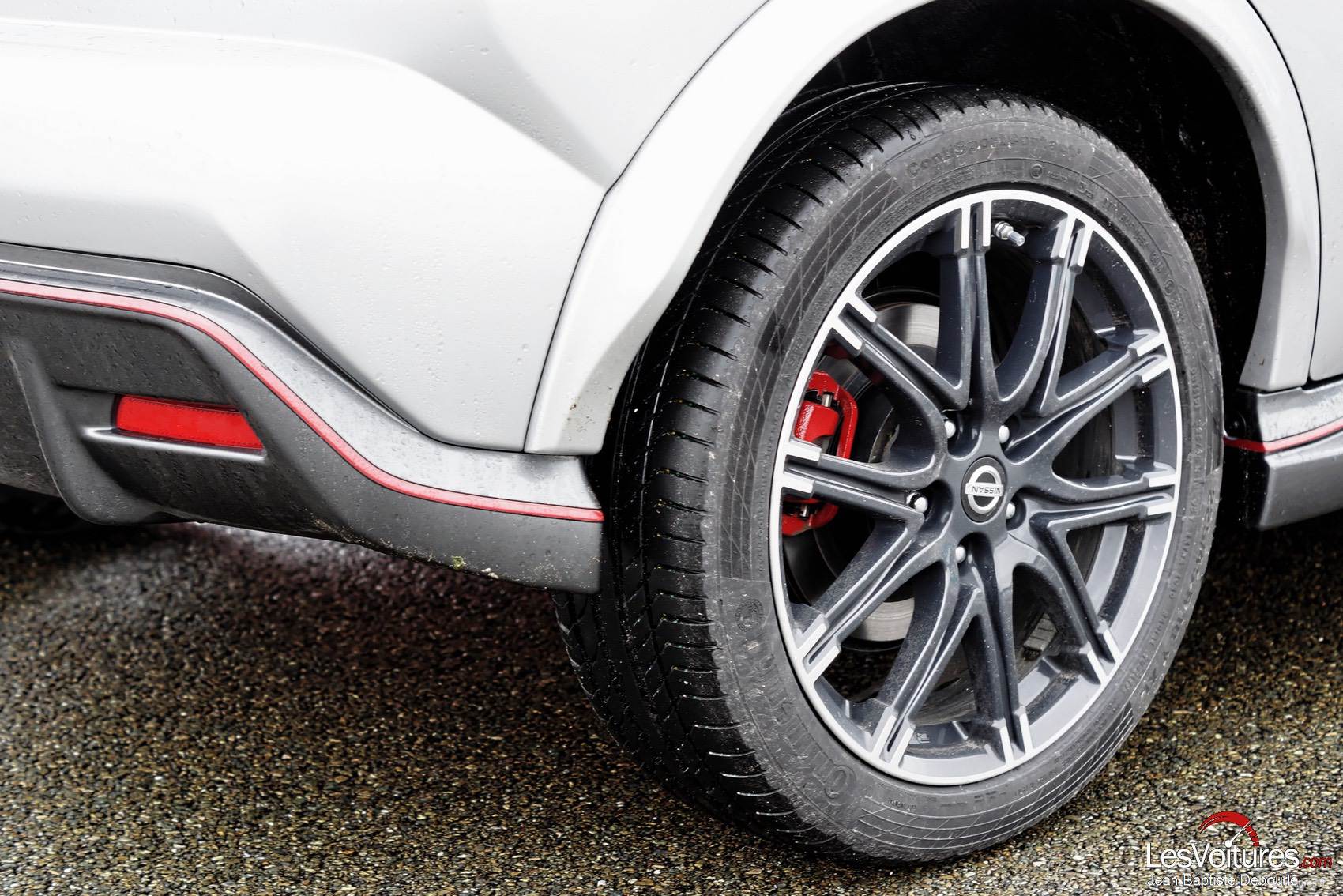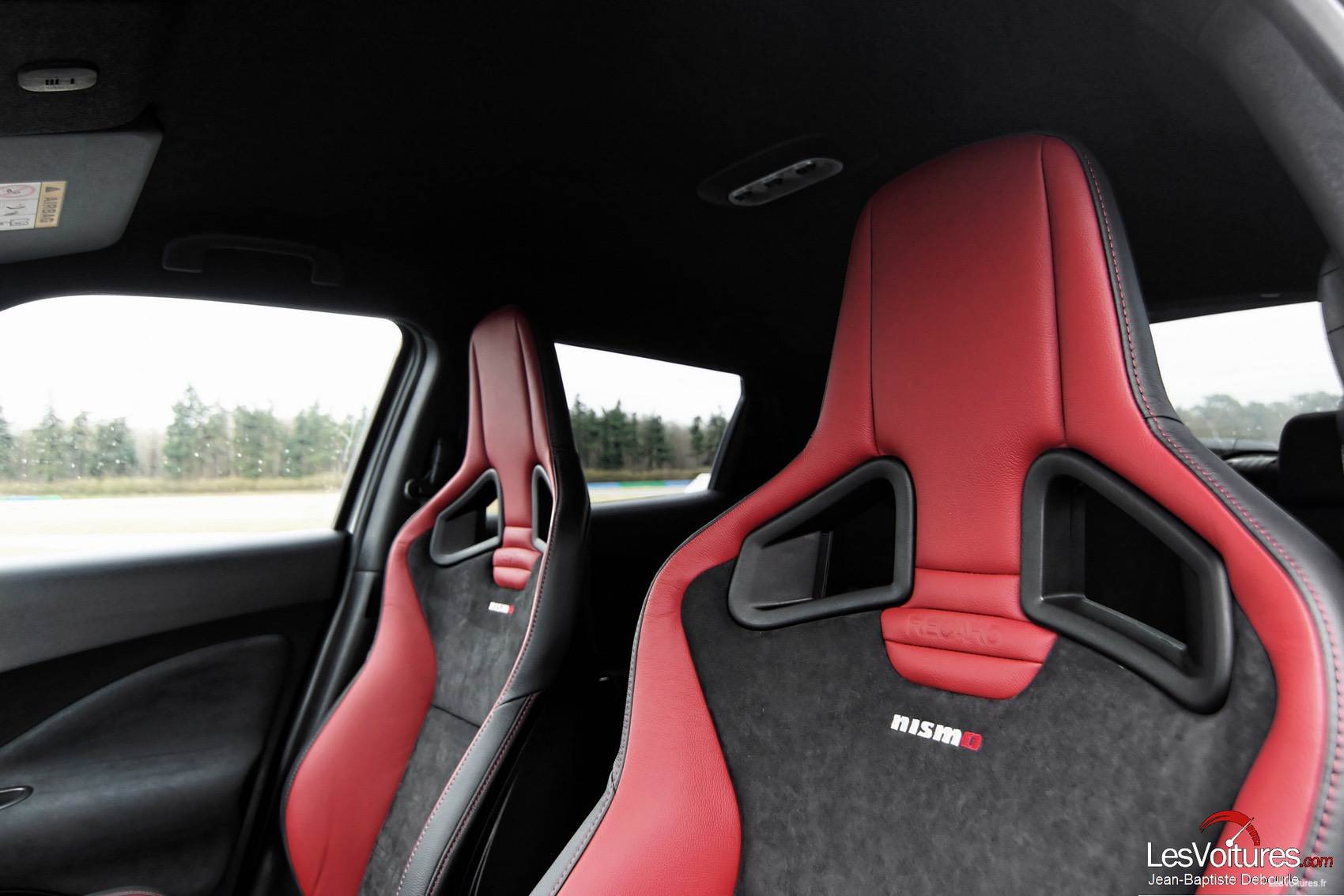 Comparativement à la première version NISMO apparue en 2013, l’évolution technologique que renferme le Juke NISMO RS est beaucoup plus intéressante. Le bloc 1.6 DIG-T développe 218 chevaux sur notre version d’essai à traction, alors que la version à transmission intégrale atteint 214 chevaux. Cette dernière configuration étant équipée de la boîte automatique CVT à 8 rapports. Pourquoi une différence de 4 chevaux entre ces deux Juke ? Et bien c’est très simple, les 280 Nm de couple du 1.6 DIG-T (traction) sont impossible à absorber par la CVT. Le Juke 4×4 perd donc un peu de puissance au profit d’une fiabilité certaine.