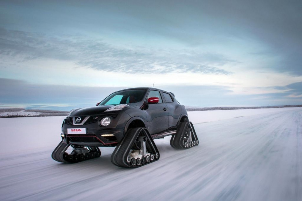 On connaissait déjà le Ford F-150 RaptorTRAX équipé de chenilles appartenant à Ken Block (à voir sur : vidéo Ken Block Ford F-150 RaptorTRAX). Au tour de Nissan de sortir un Juke Nismo RS métamorphosé pour évoluer partout en montagne.