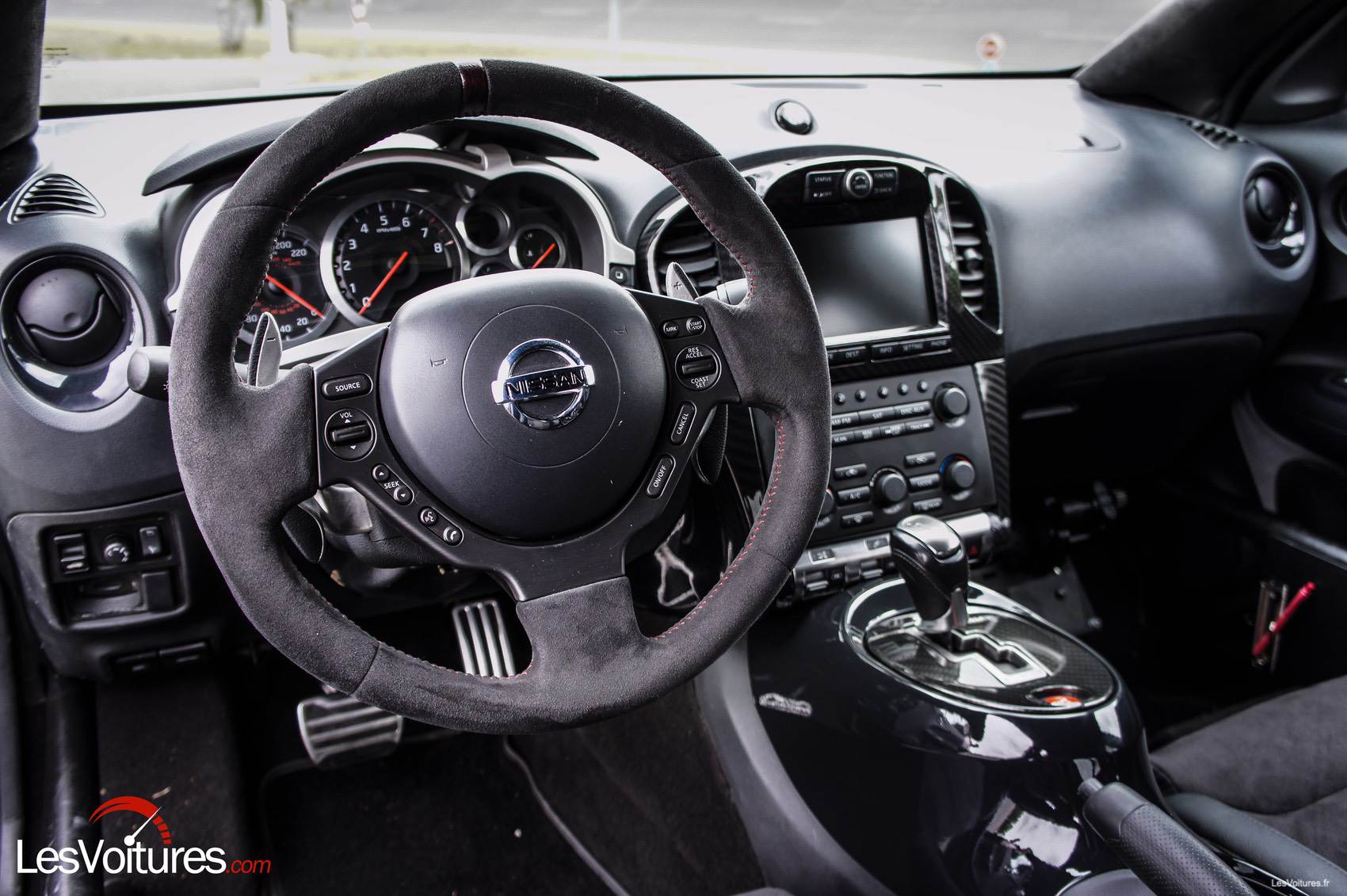 Après un premier galop d’essai sur l’anneau de 43° d’inclinaison au volant du Juke NISMO RS DIG-T 214 4×4, nous montons à bord du Juke-R 2.0. Une fois sanglé, la position de conduite n’est pas la plus idéale du fait que le volant n’est pas réglable en profondeur. On se retrouve en position très assise comparativement à celle plus allongée de la GT-R.