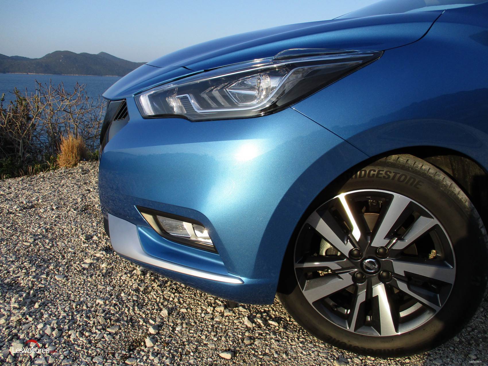 Si l’on devait trouver un slogan pour cette nouvelle mouture, « Vivez votre Micra », nous semblerait particulièrement pertinent. Comme évoqué précédemment, Nissan propose, outre ces couleurs flashy qui lui vont très bien, tout un catalogue de personnalisations. Aux dix teintes pour la carrosserie, vous pouvez adjoindre des packs intérieurs et extérieurs pour créer votre Micra à votre image. Des stickers aux touches de couleurs en passant par les inserts, ce sont en tout plus de cent combinaisons possibles. Au fait, Monsieur Nissan, pourquoi proposer tant de technologie embarquée quand il n’existe pas de vide poches arrière et qu’il n’est même pas possible, en option, d’avoir les vitres électriques arrière ? Pique mise à part, partons maintenant au volant de cette très attractive citadine.