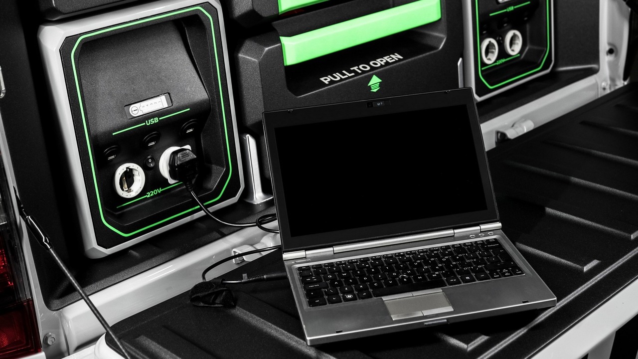 Nissan a pensé à tout en intégrant deux prototypes de batteries portables. Elles sont enfermées dans un boitier étanche et peuvent donc être utilisées en conditions plus qu’extrêmes en cas d’urgence pour connecter un PC portable par exemple ou recharger des talkies-walkies.