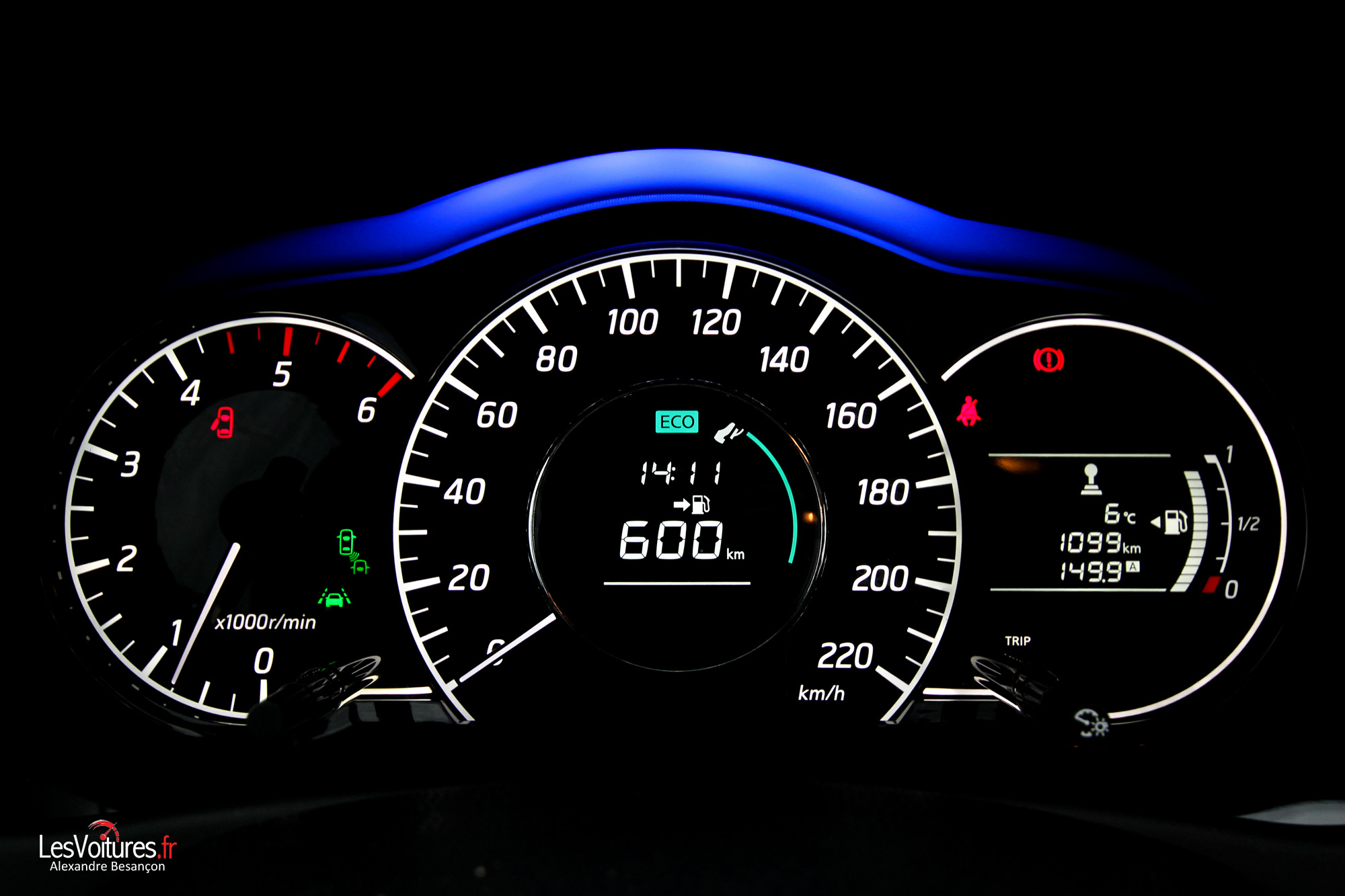 Mais Nissan va au-delà de ces systèmes qui sauront rassurer les jeunes familles économes qui souhaitent une citadine polyvalente pouvant se mouvoir en dehors des villes. En effet, proposé sur toutes les finitions, le système « Ecomètre » nous a littéralement conquis. D’une simple pression sur le bouton ECO, le moteur du Note passe en mode économique. Le conducteur peut aussi visualiser et optimiser sa conduite via ce mode. Une jauge représentant le niveau de pression sur l’accélérateur apparaît alors sur l’ordinateur de bord et une lumière bleue indique votre savoir faire en conduite économique.