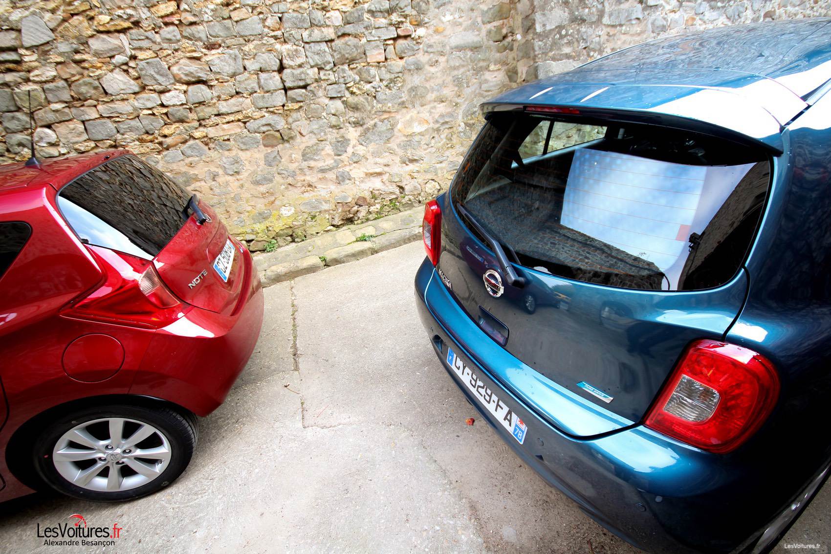 Côté tarifs, nous avons gardé cette donnée pour la fin, comme le meilleur. Le Note étant disponible à partir de 13 490,00 € (1.2L 80ch – Visia). Notre Note 1.5 dCi 90ch est proposé à 19 590,00 € hors options (peinture métallisée). La gamme Micra débute avec la 1.2L 80ch Visia facturée 11 390,00 €. Notre modèle d’essai la Micra 1.2L 80ch Connect Edition (avec NissanConnect 2.0 et statut Bronze Le Boudoir) affiche 15 060,00 € avec la peinture métallisée (option). Le « Haut de gamme » Micra étant représenté par la 1.2L DIG-S de 98 chevaux en finition Tekna à 17 200,00 €. La boite auto CVT optionnelle vous coûtera 1100, 00 €. Rappelons que les Nissan sont garanties 3 ans/ 100 000 km. Avec ses tarifs Nissan est hyper agressif, fort logiquement avec la stratégie de la marque pour la Micra mais le Note étonne par son niveau d’équipement et ses innovations. Une belle histoire est donc à écrire pour notre couple de citadines qui saura séduire les femmes ou les familles sans jamais les « tromper ». Avant de découvrir d’autres clichés de notre double essai, voici le Note et la Micra en vidéo, accompagnés par le Nissan Juke.