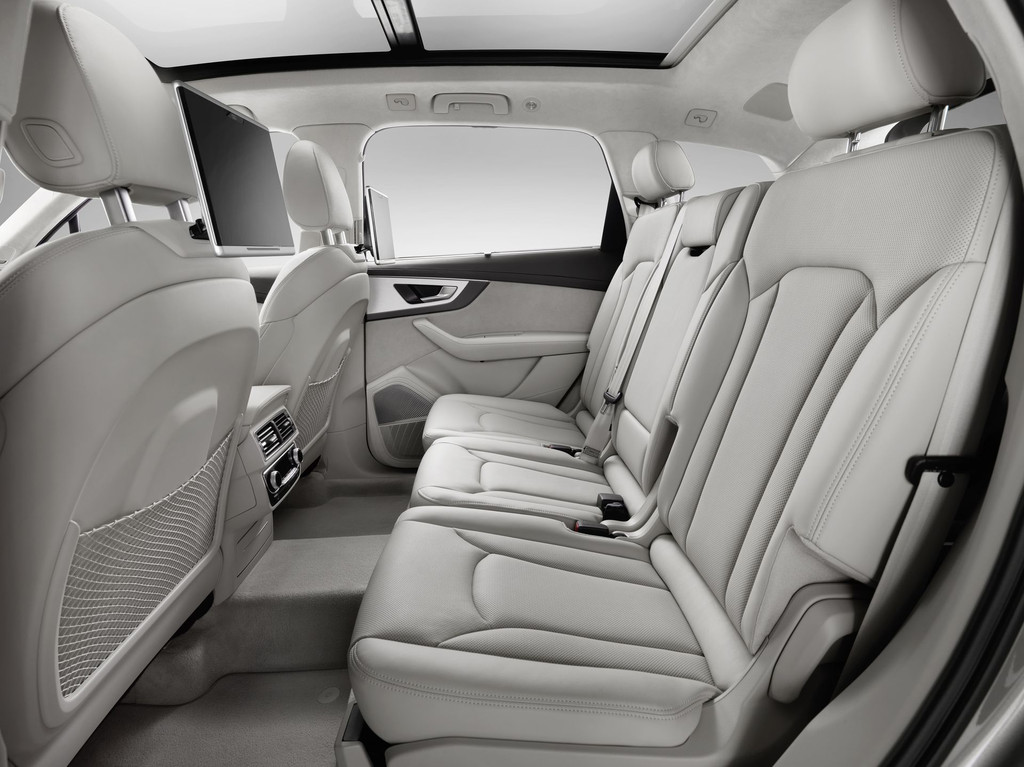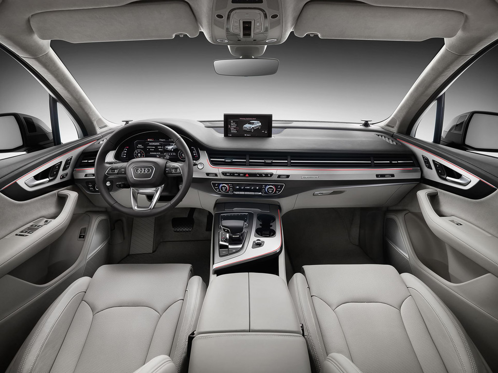 La nouvelle identité visuelle des SUV Audi, comme pour le Q3 restylé attendu pour début 2015, est représentée par la nouvelle calandre. Elle adopte un nouvelle élément au rendu métallique mat qui l’entoure. Par rapport au premier Q7, la version 2015 est plus petite avec 5,05 m de long, 1,97 m de large et 1,74 pour un empattement de 2,99 m.