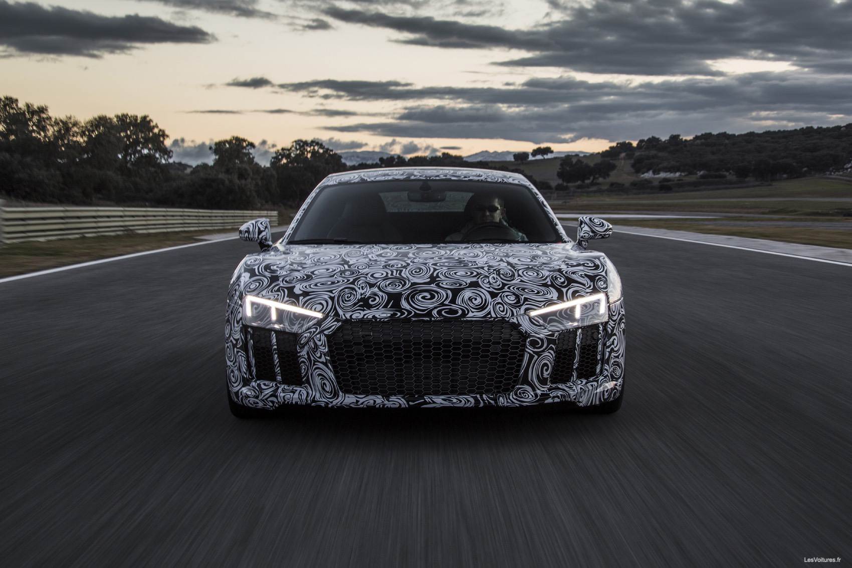 C’est zébrées de noir et de blanc que les nouvelles R8 se sont présentées sur le circuit espagnol d’Ascari. Les journalistes présents sur l’évènement ont pu essayer en passager la nouvelle version de la Supercar allemande, qui sera complètement dévoilée au salon de Genève. La marque aux anneaux en a profité pour publier une vidéo et une série de photos en mode « camouflage »…