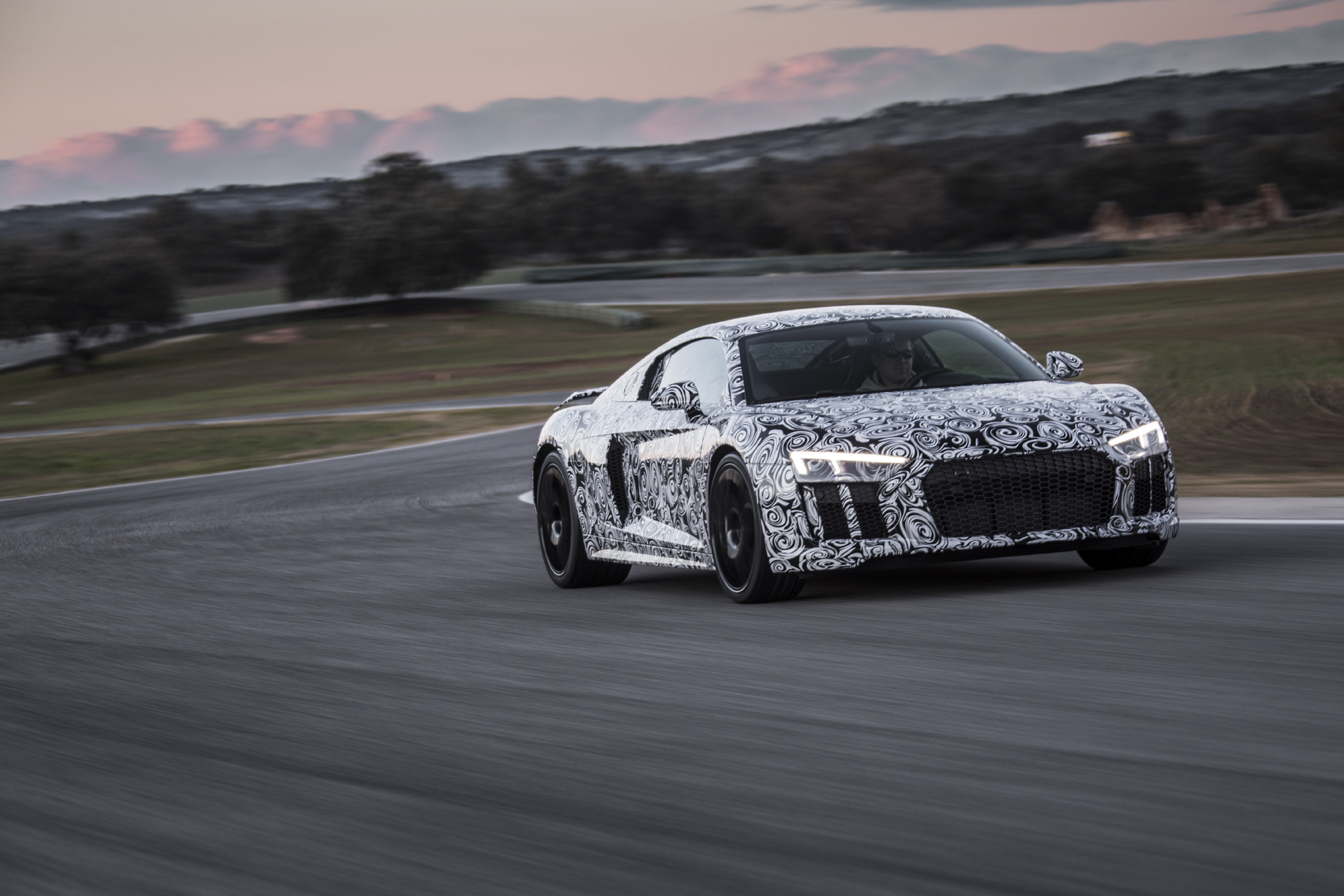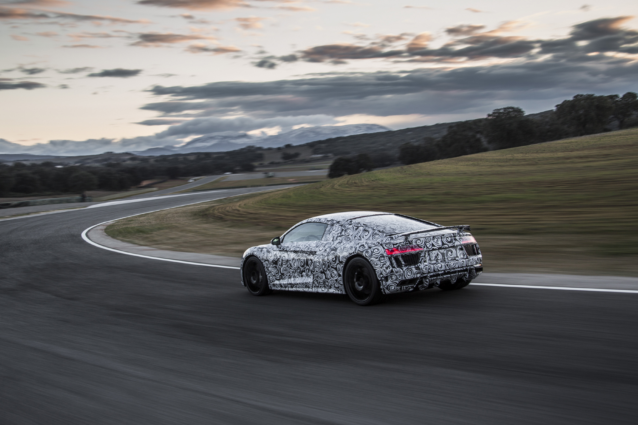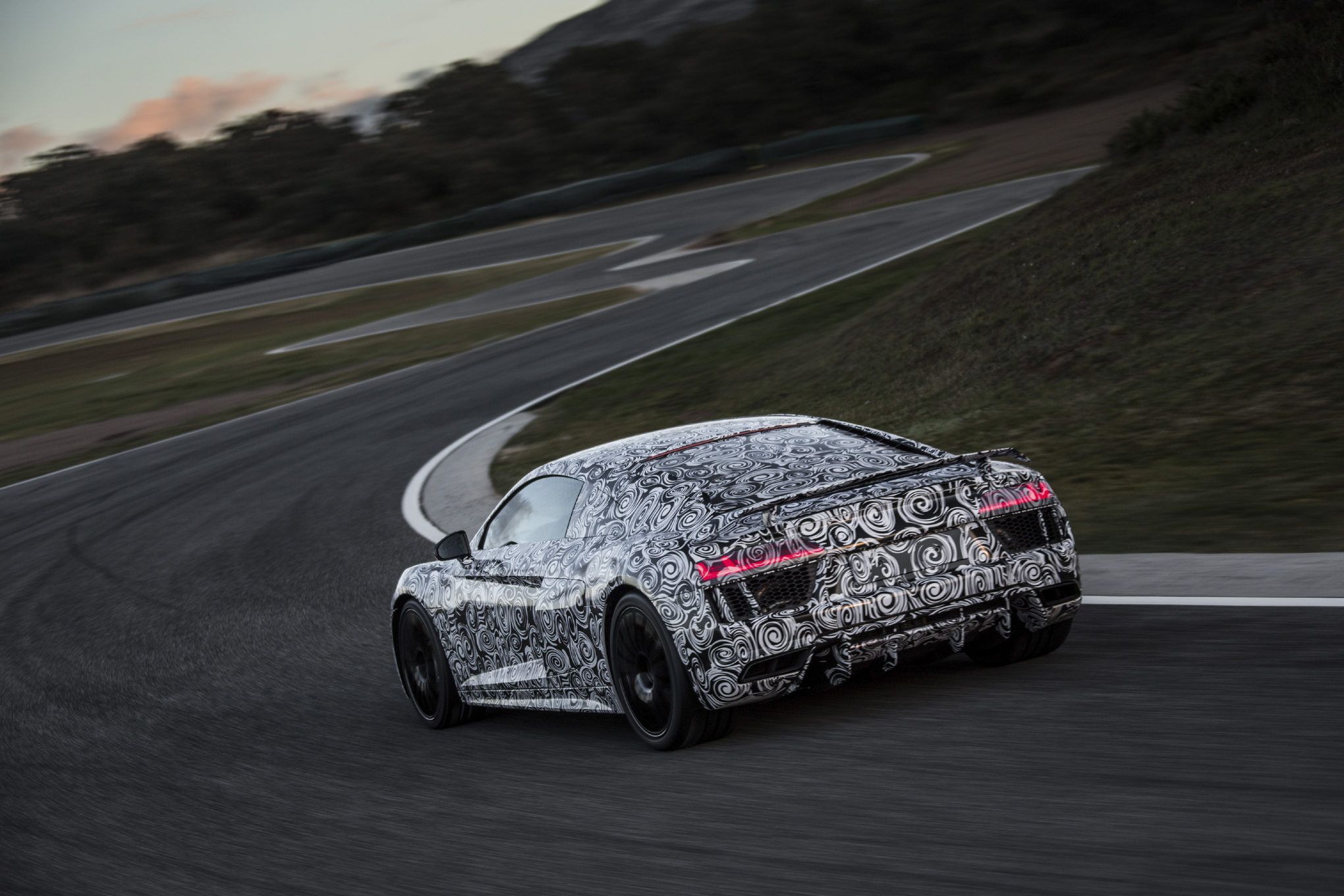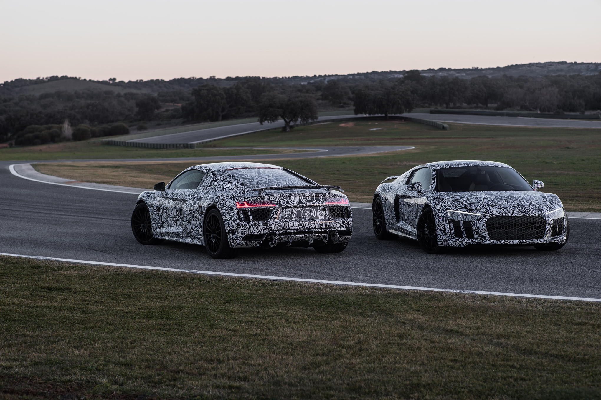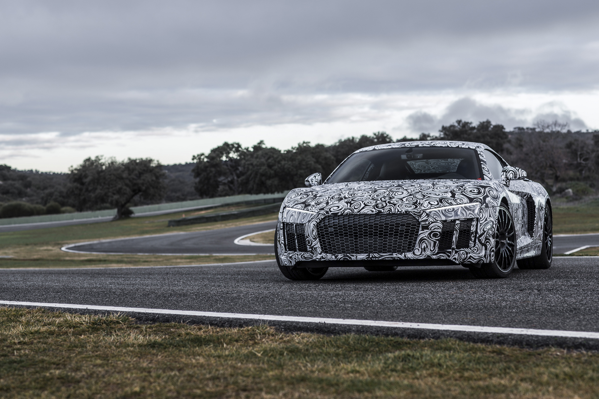 C’est zébrées de noir et de blanc que les nouvelles R8 se sont présentées sur le circuit espagnol d’Ascari. Les journalistes présents sur l’évènement ont pu essayer en passager la nouvelle version de la Supercar allemande, qui sera complètement dévoilée au salon de Genève. La marque aux anneaux en a profité pour publier une vidéo et une série de photos en mode « camouflage »…