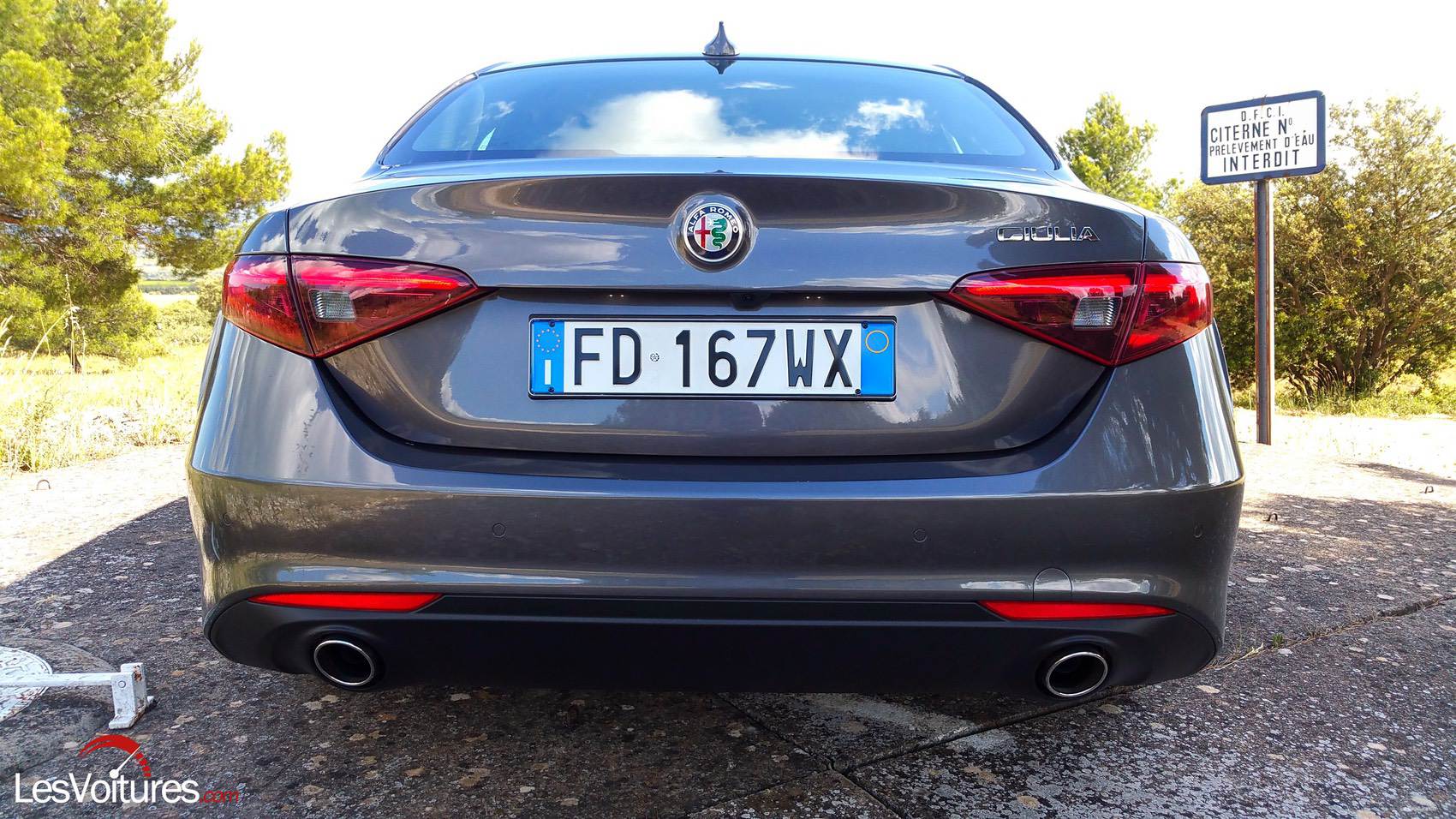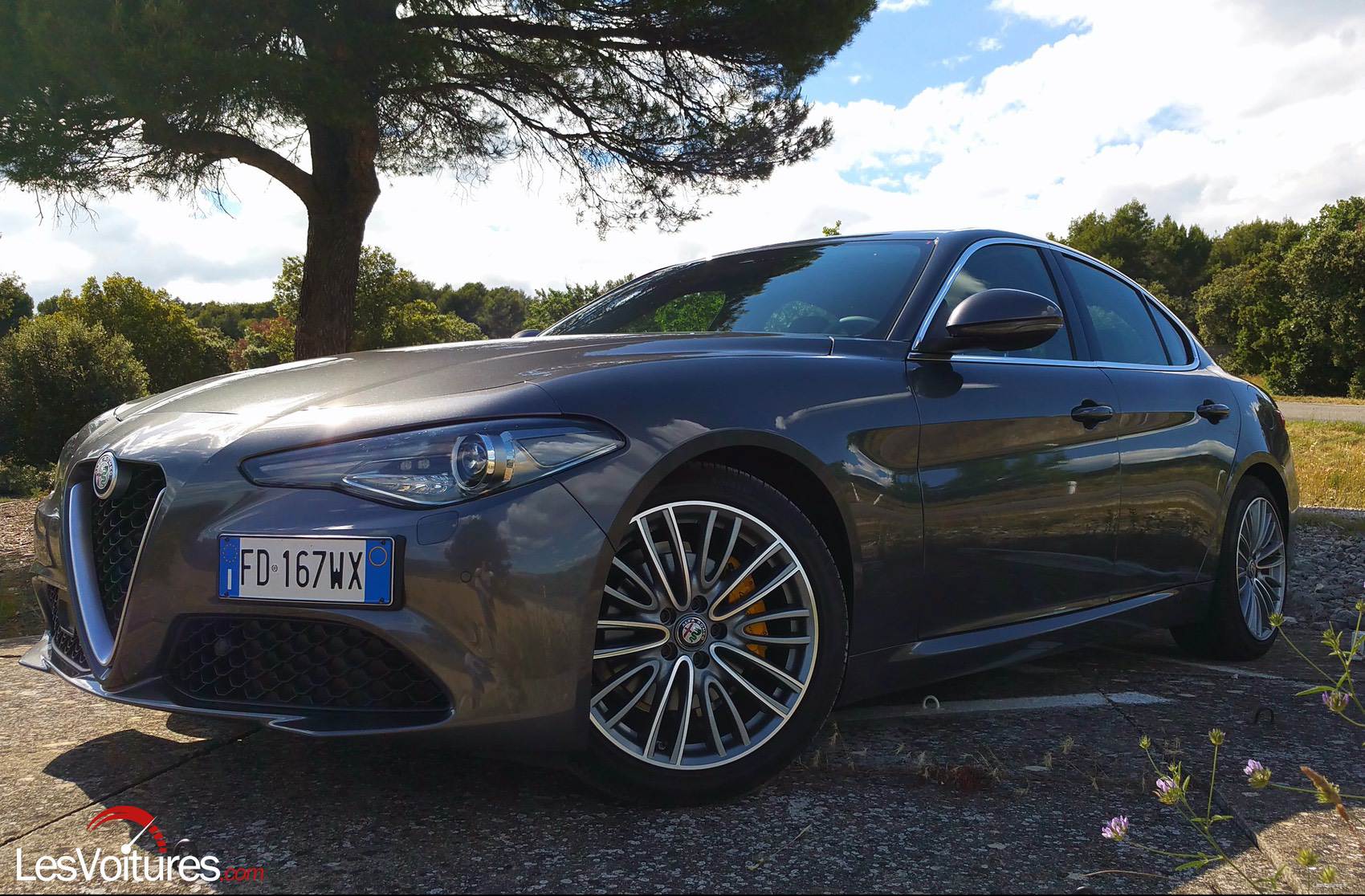 Une Alfa Romeo, c’est d’abord une gueule et là, les avis sont partagés. Côté design, on pourrait lui reprocher un aspect trop consensuel, trop germanique, pour simplifier les choses. Alors, on pourrait s’attarder, il est vrai, sur ce dessin des feux arrière qui fait penser à une Audi A4 mais, peut-on vraiment reprocher à Alfa Romeo de vouloir atteindre l’excellence ? Personnellement, je trouve qu’elle fait la parfaite synthèse entre le côté fougueux latin et le côté rigoureux germanique. Du reste, lors de notre retour en convoi pour aller à la gare, tous les regards se tournaient vers cette face avant très caractéristique. Trêve de paroles, parlons de la voiture en elle-même désormais.