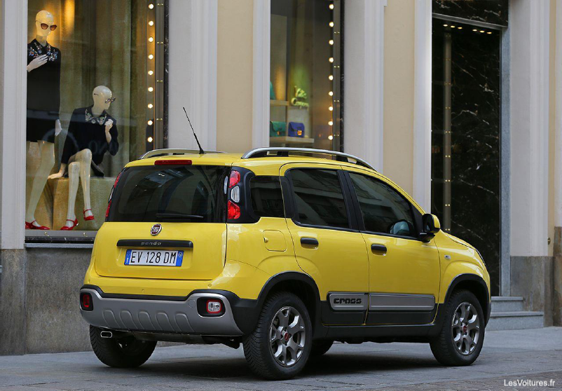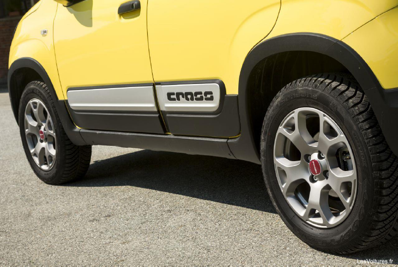 Les flancs de la Panda Cross prononcent de nouveau le côté 4×4 très sérieux de l’auto à travers des éléments spécifiques tels que les passages de roues prononcés, des protections latérales badgées « Cross ». En rappel au bouclier avant, les nouvelles barres de toit reprennent une finition métallique présente également sur les côtés. Les jantes de 15″ sont plus sombres et arborent une teinte en métal noirci. Elles accueillent des pneumatiques 185/65R15 M+S « toutes saisons ».