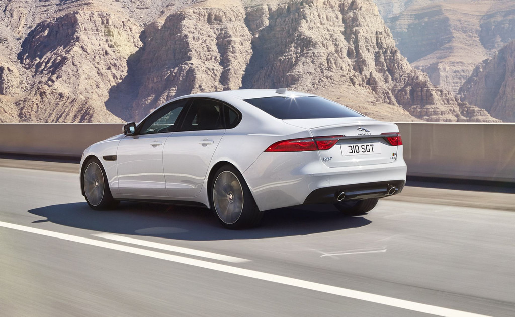 Côté motorisations, la gamme s’oriente autour des blocs Ingenium déjà bien connus. En essence, on retrouve le 4 cylindres 2.0 l de 240 ch pour 340 Nm de couple et le V6 3.0 l suralimenté par compresseur (issu de la F-TYPE) en deux configurations : 340 ch/450 Nm et 380 ch/450 Nm (Jaguar XF S). En diesel, le bloc de 2.0 l est décliné en 163 ch et 180 ch avec respectivement 380 et 430 Nm de couple. Le petit diesel n’émet que 104 g/km de CO2 pour une consommation tout aussi alléchante de 3,9 l/100 km avec la boîte manuelle à 6 rapports.