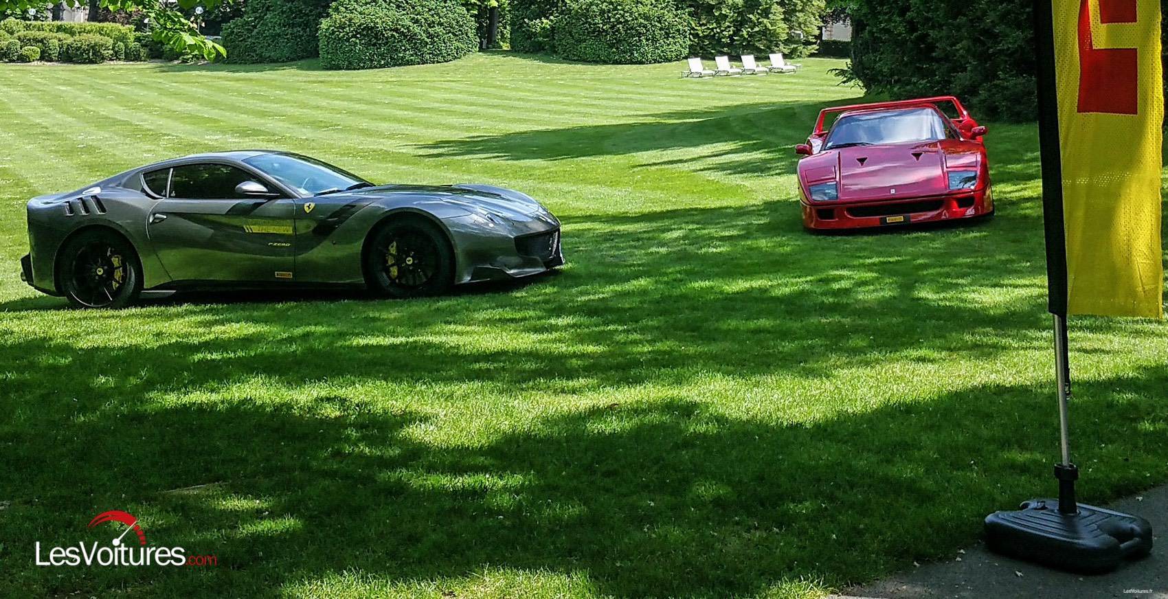 Suite à cette matinée des plus studieuses, déjeuner dans un domaine magnifique où, pour l’occasion, Pirelli a réuni une F40 et une F12 TdF. Ces deux modèles sont les écrins du premier et du dernier Pzero créés pour Ferrari et que trente ans séparent.