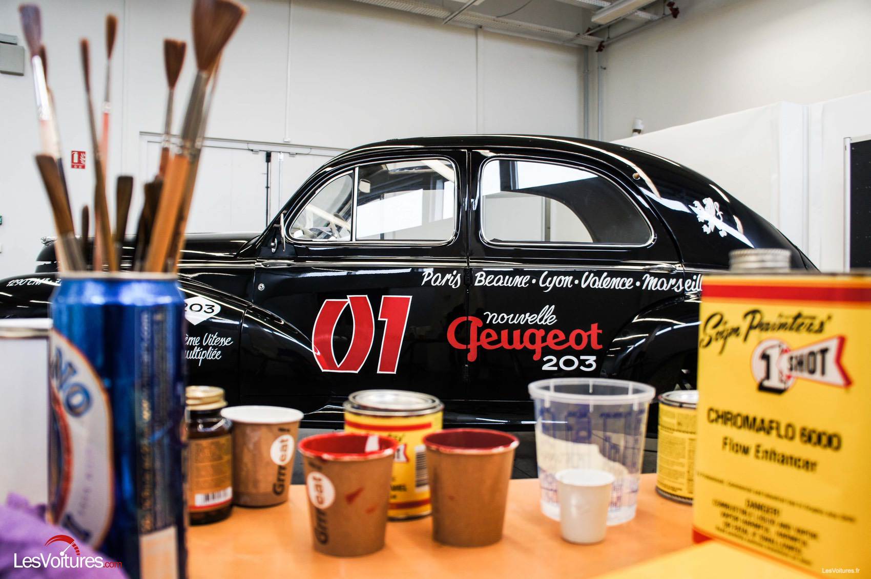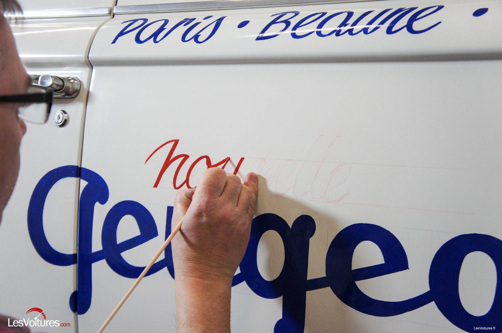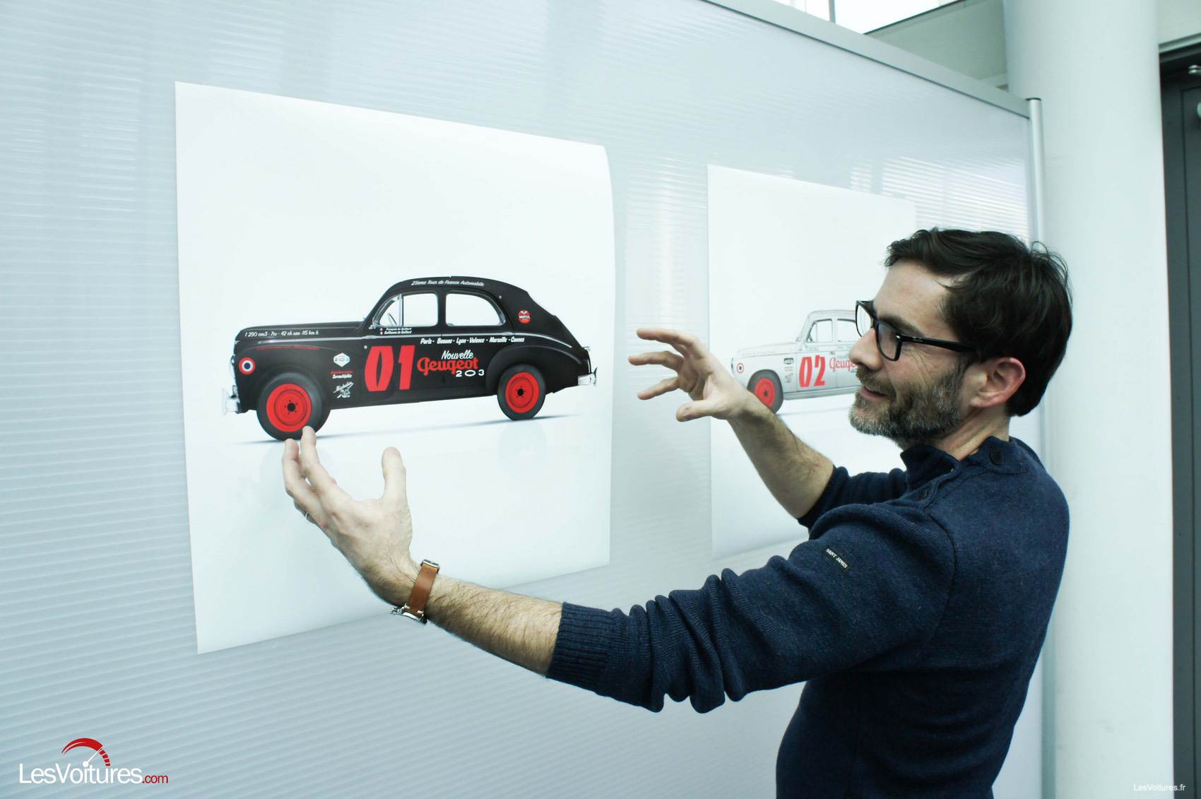 « Concernant les décorations des 203 et 403 pour le Tour Auto, et si on regarde l’histoire, on s’aperçoit qu’elles étaient assez pauvres à l’époque. On avait les numéros d’engagement des autos, des capots noirs simples et, au global, des livrées peu spectaculaires contrairement aux voitures de courses d’aujourd’hui. Nous avons donc étudié un style plus attrayant mais sans trahir l’histoire. On est donc parti sur une typographie qui offre beaucoup plus d’impact visuel et qui remplace le simple coup de peinture des années 50 et 60. L’idée est de présenter les caractéristiques des voitures et les villes étapes du rallye sur leur carrosserie pour enrichir l’expression graphique historique, que nous devons respecter. »